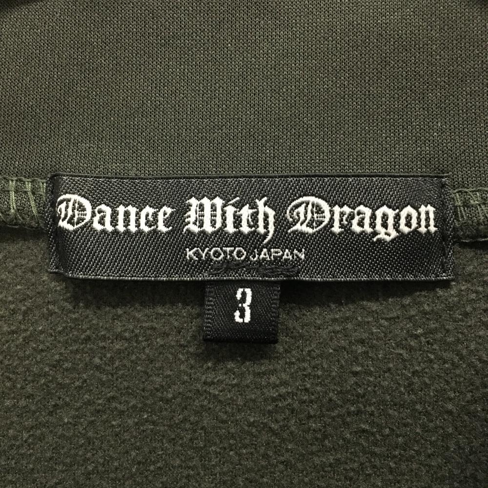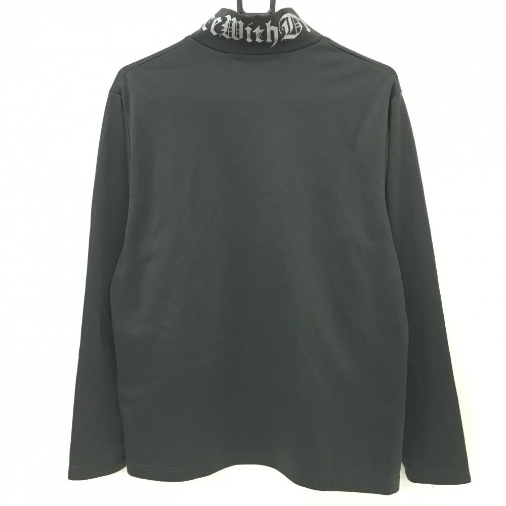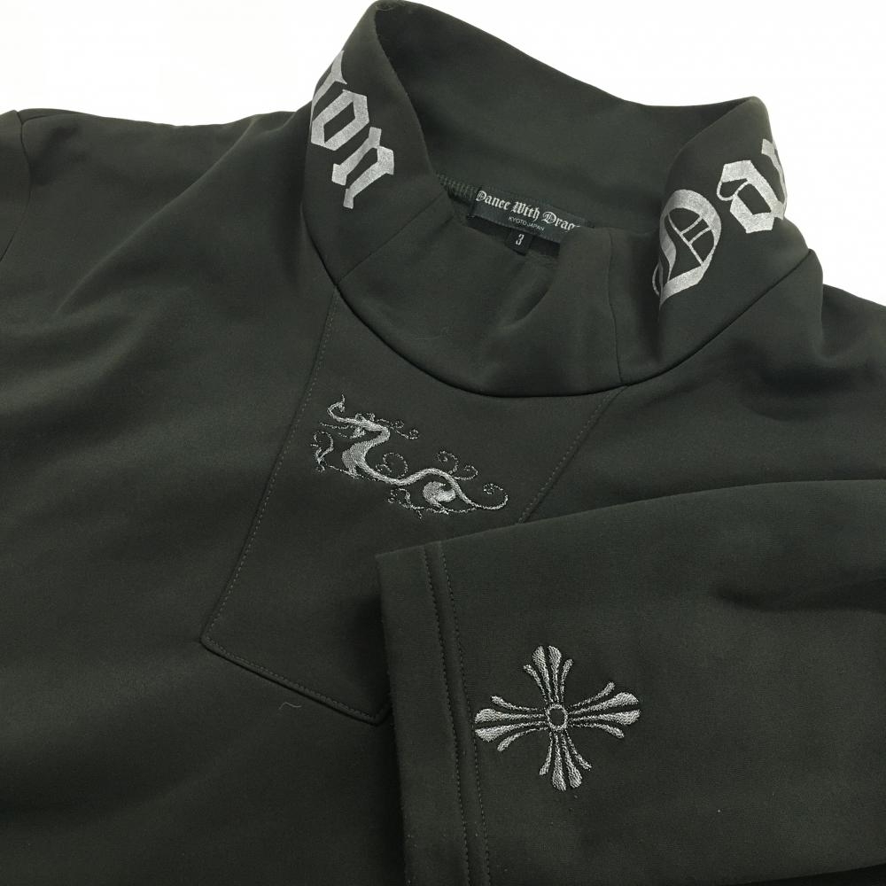 ダンスウィズドラゴン 長袖ハイネックシャツ カーキ×シルバー 襟ロゴプリント 裏起毛 メンズ 3(L) ゴルフウェア Dance With Dragon