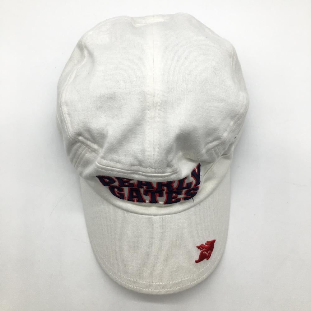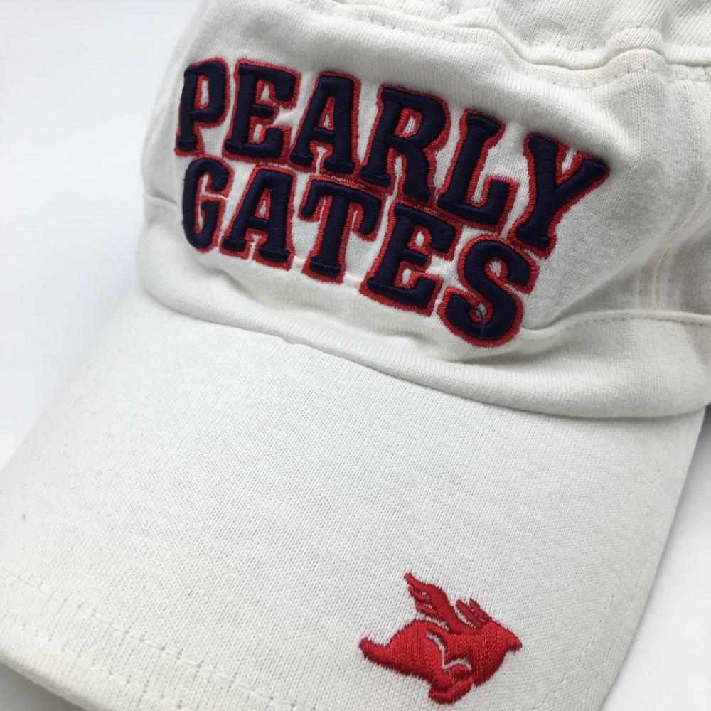 【美品】パーリーゲイツ ワークキャップ 白×レッド コットン100% M ゴルフウェア PEARLY GATES