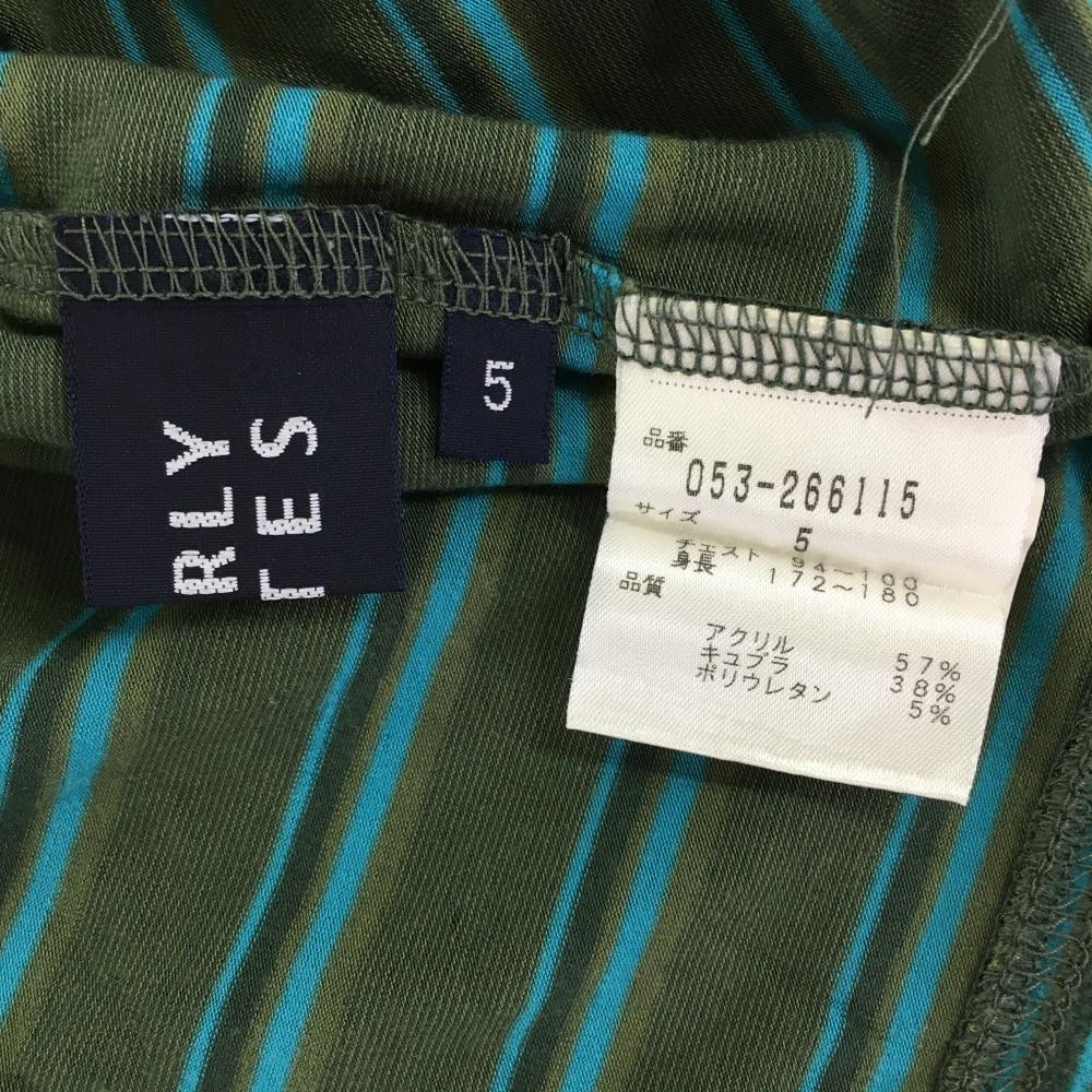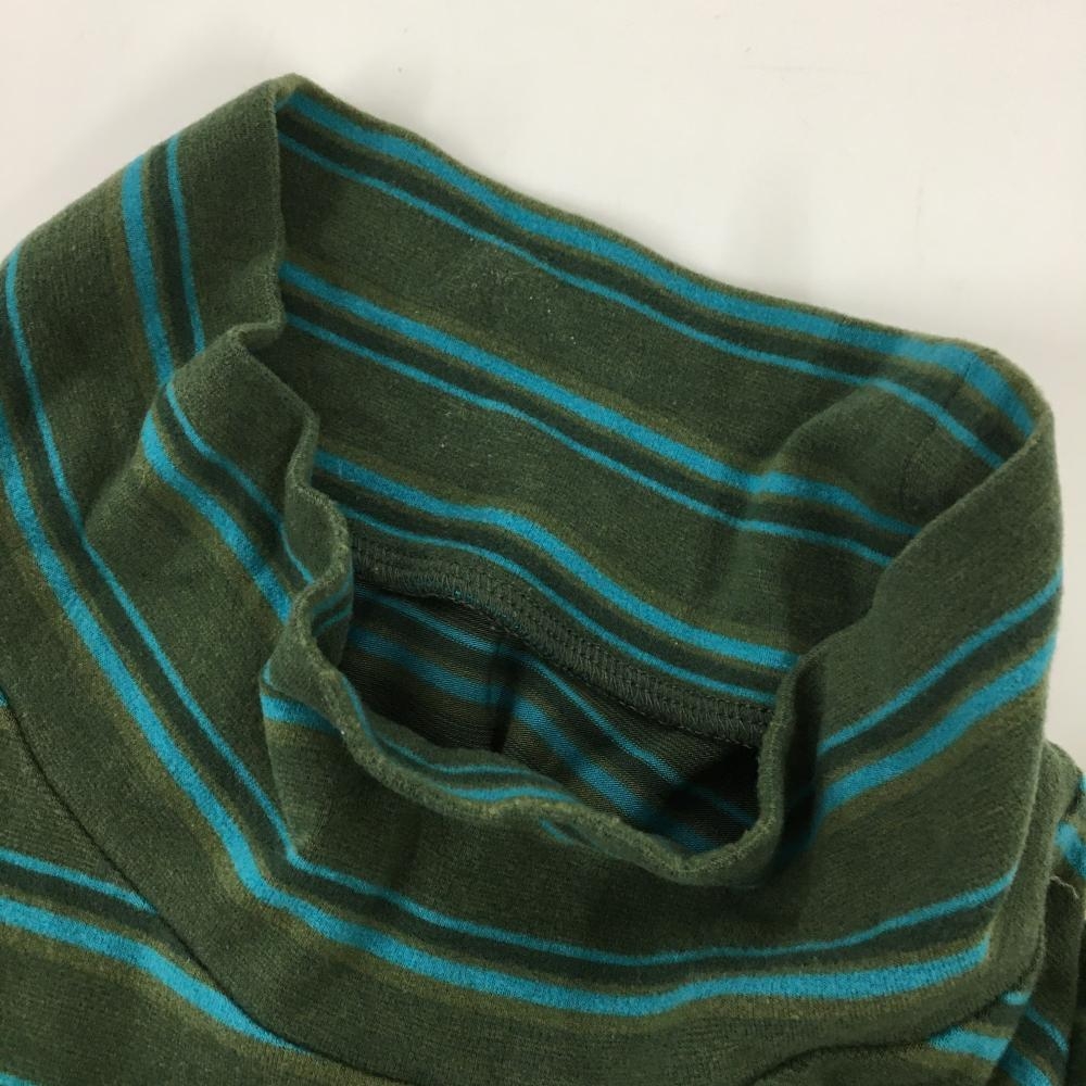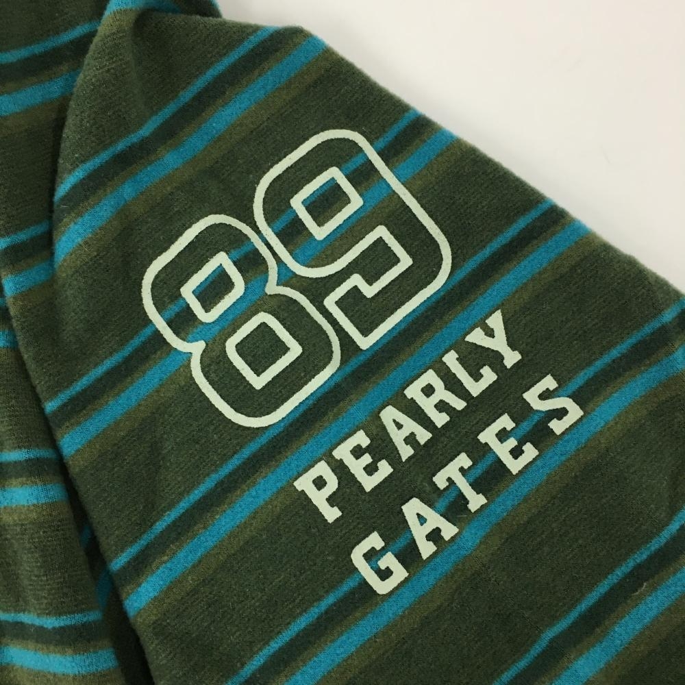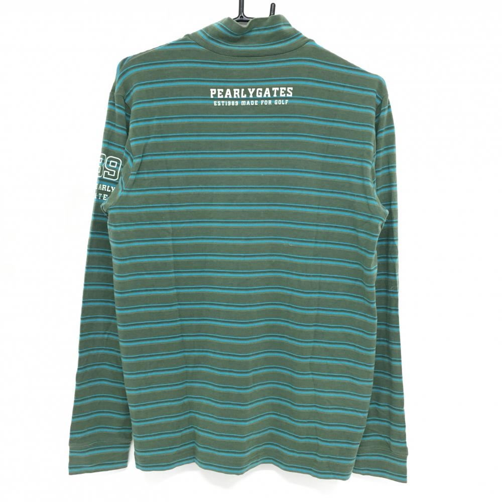 パーリーゲイツ 長袖ハイネックシャツカーキ×ライトブルー ボーダー 表微起毛 メンズ 5(L) ゴルフウェア PEARLY GATES