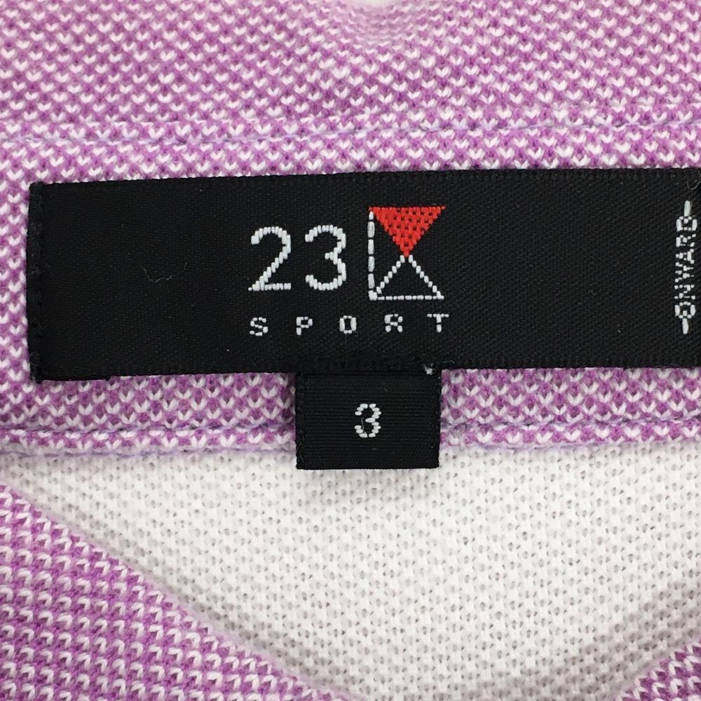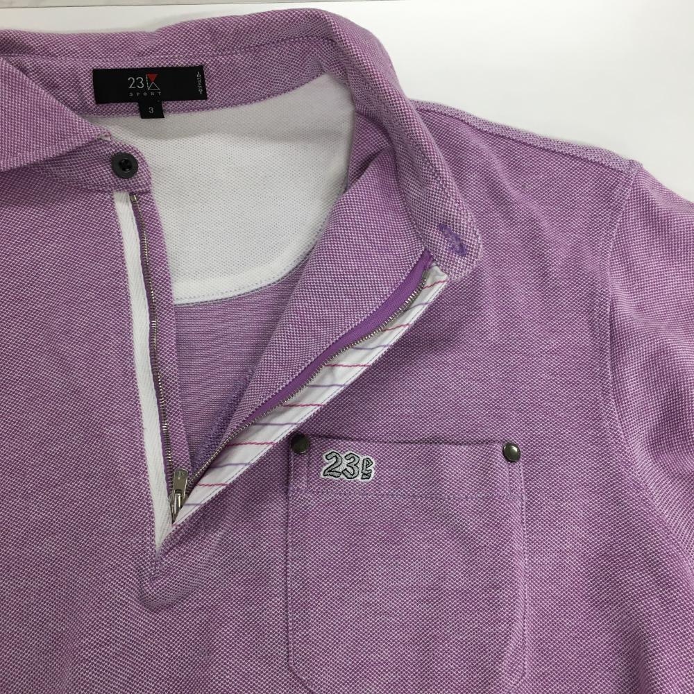 23区スポーツ 長袖ポロシャツ パープル ハーフジップ 胸ポケット メンズ 3(XL) ゴルフウェア 23区