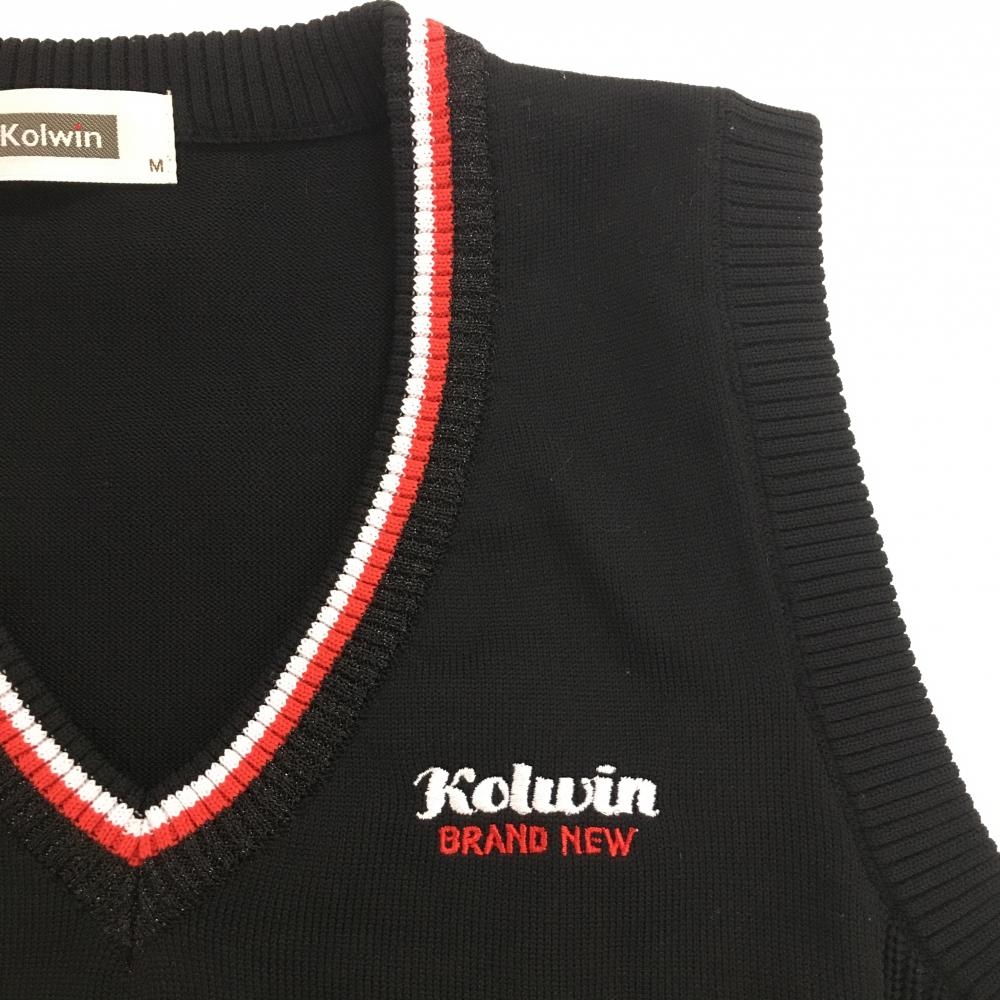 【超美品】コルウィン ニットベスト 黒×レッド Vネック ネック裾ライン レディース S ゴルフウェア Kolwin