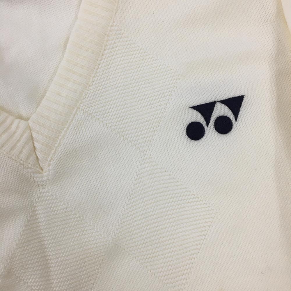 【美品】ヨネックス セーター 白 ニット Vネック ダイヤ柄 レディース S ゴルフウェア YONEX