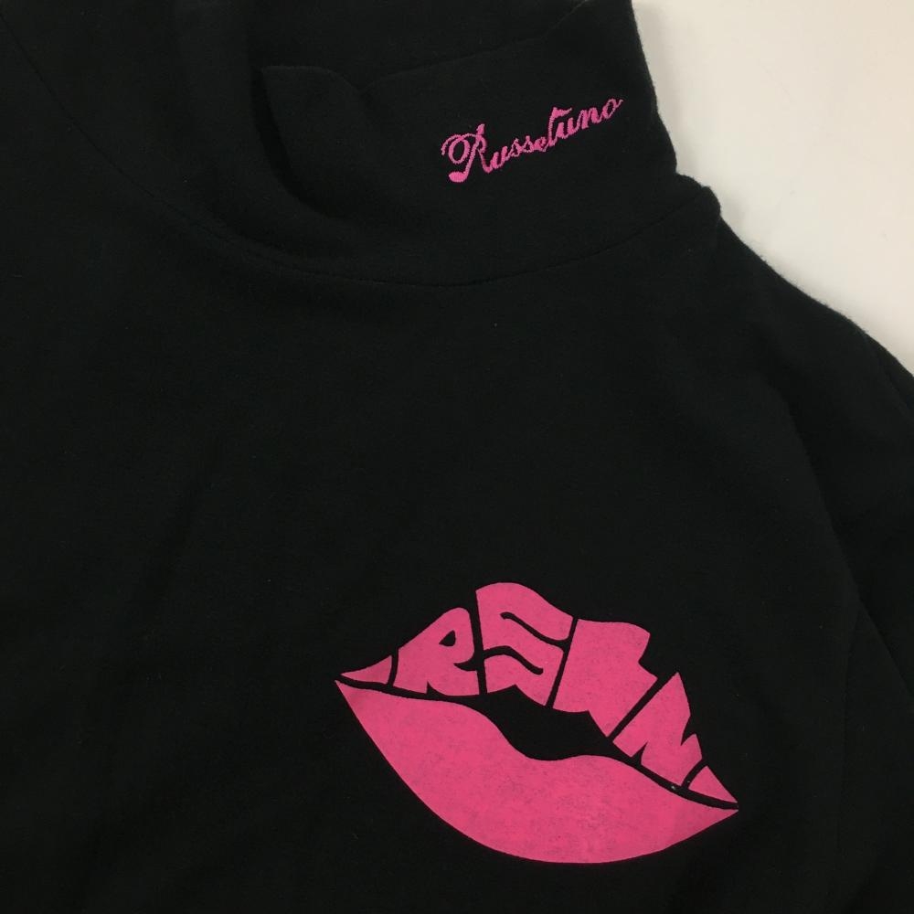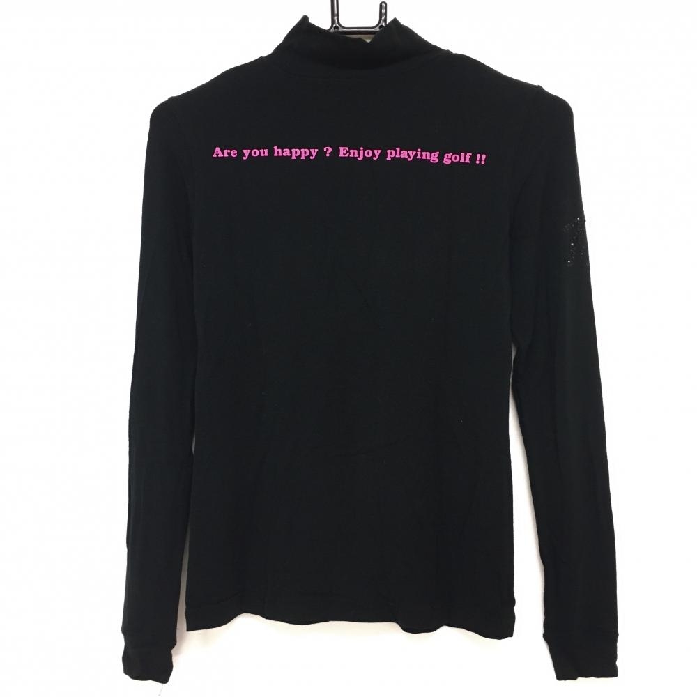 【美品】ラッセルノ 長袖ハイネックシャツ 黒×ピンク 表微起毛 ストレッチ レディース S ゴルフウェア RUSSELUNO