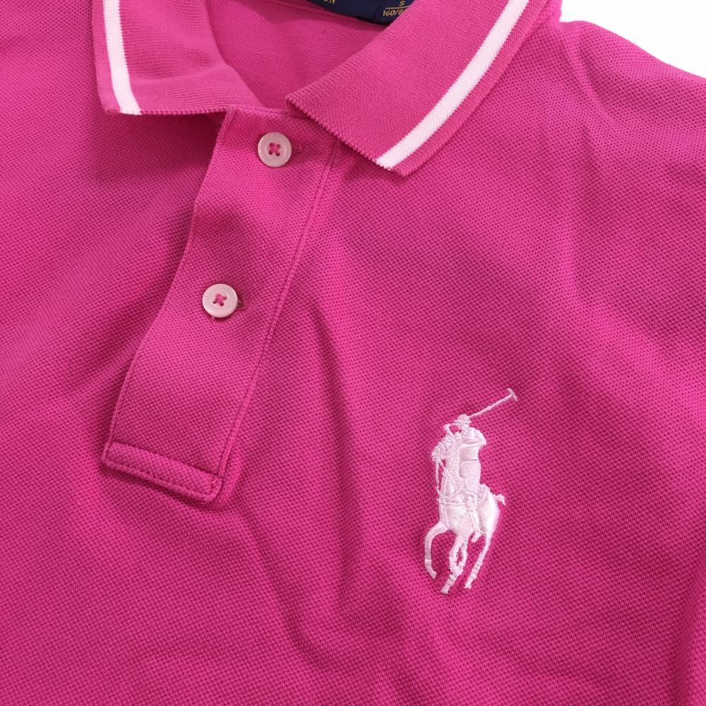 ポロゴルフ ラルフローレン 長袖ポロシャツ ピンク×白 ポニー刺しゅう コットン100% レディース S ゴルフウェア Ralph Lauren