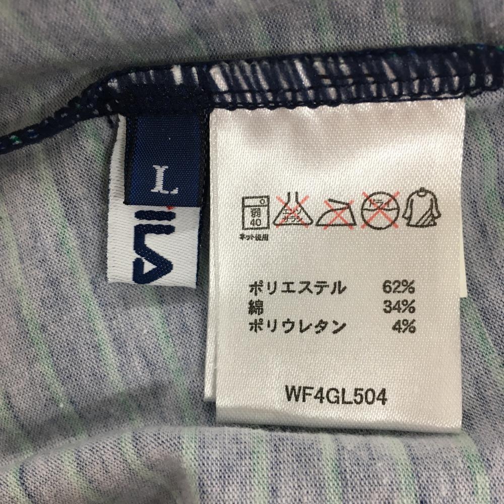 フィラゴルフ 長袖ハイネックシャツ ネイビー×グリーン ボーダー レディース L ゴルフウェア FILA GOLF