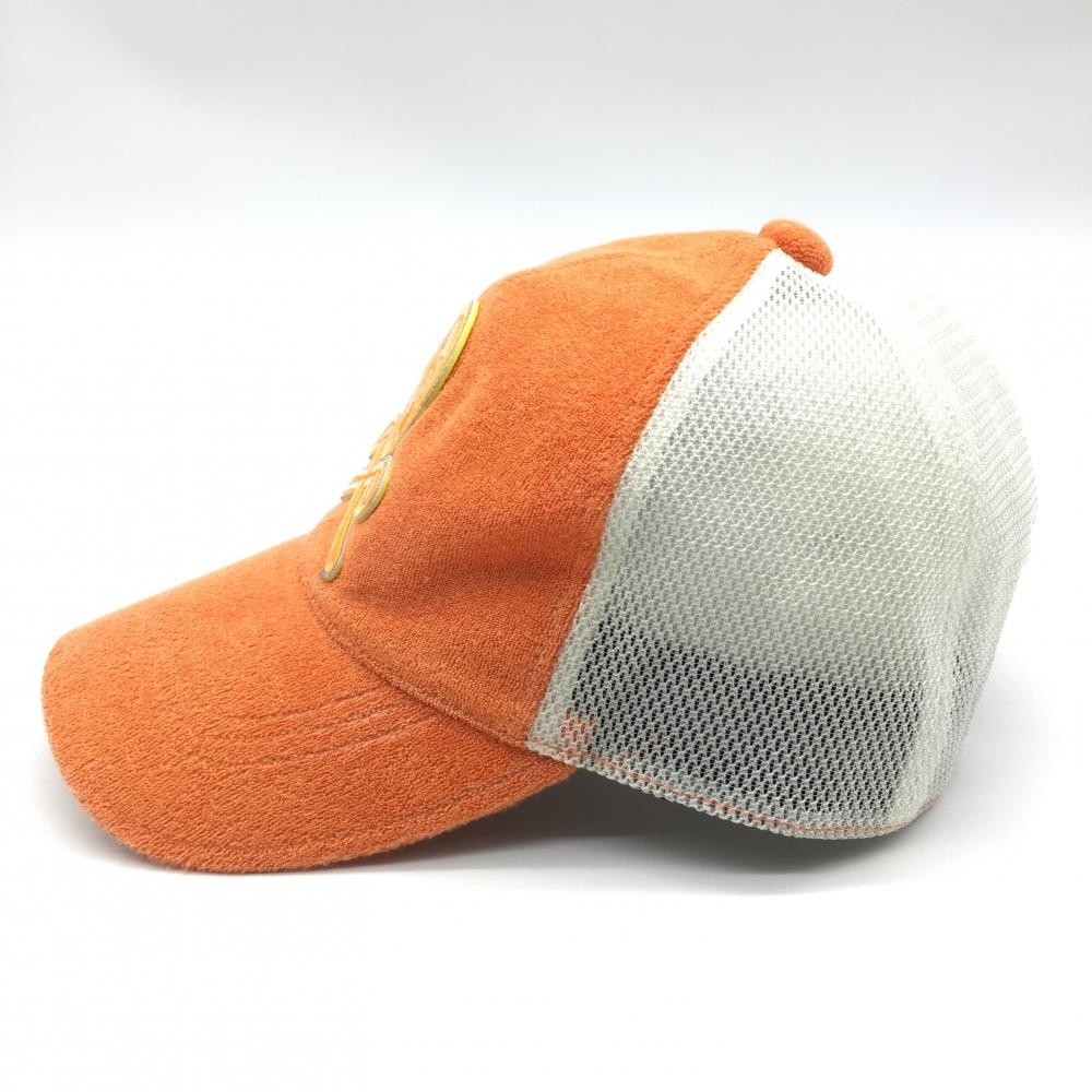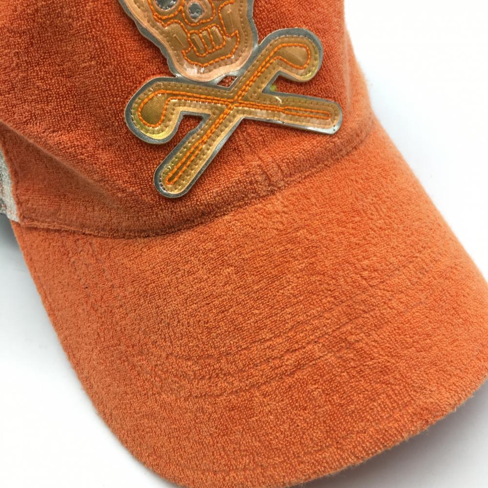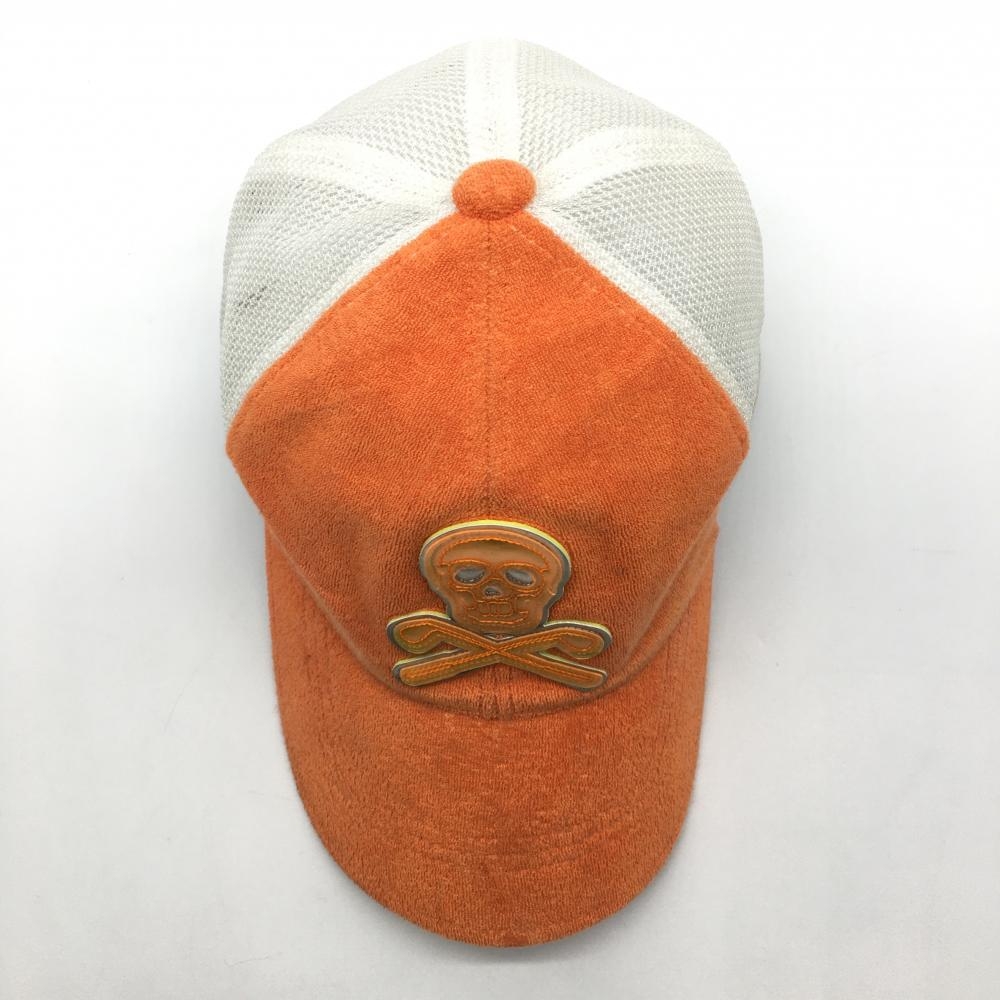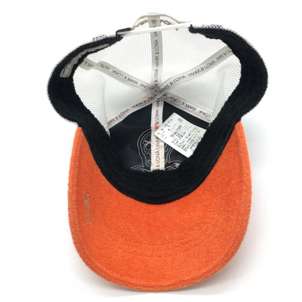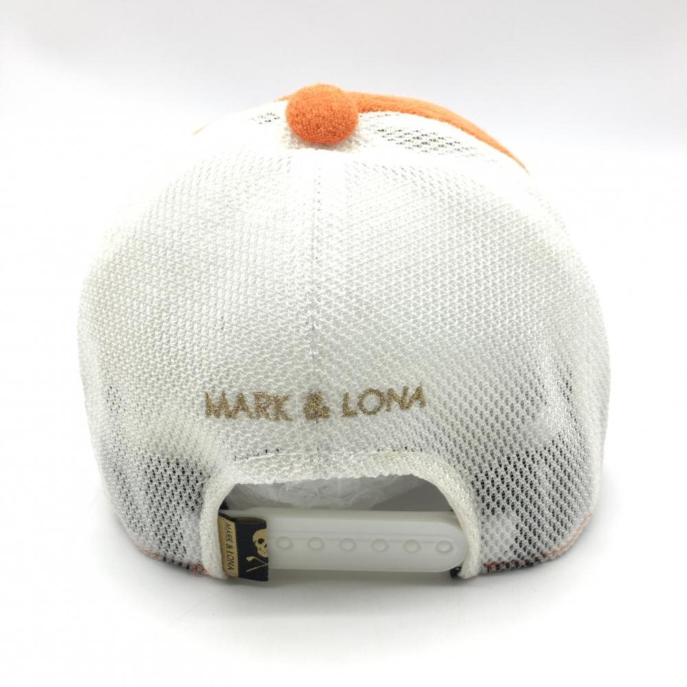 マークアンドロナ メッシュキャップ オレンジ×白 パイル地 ビッグスカル レディース S ゴルフウェア MARK&LONA