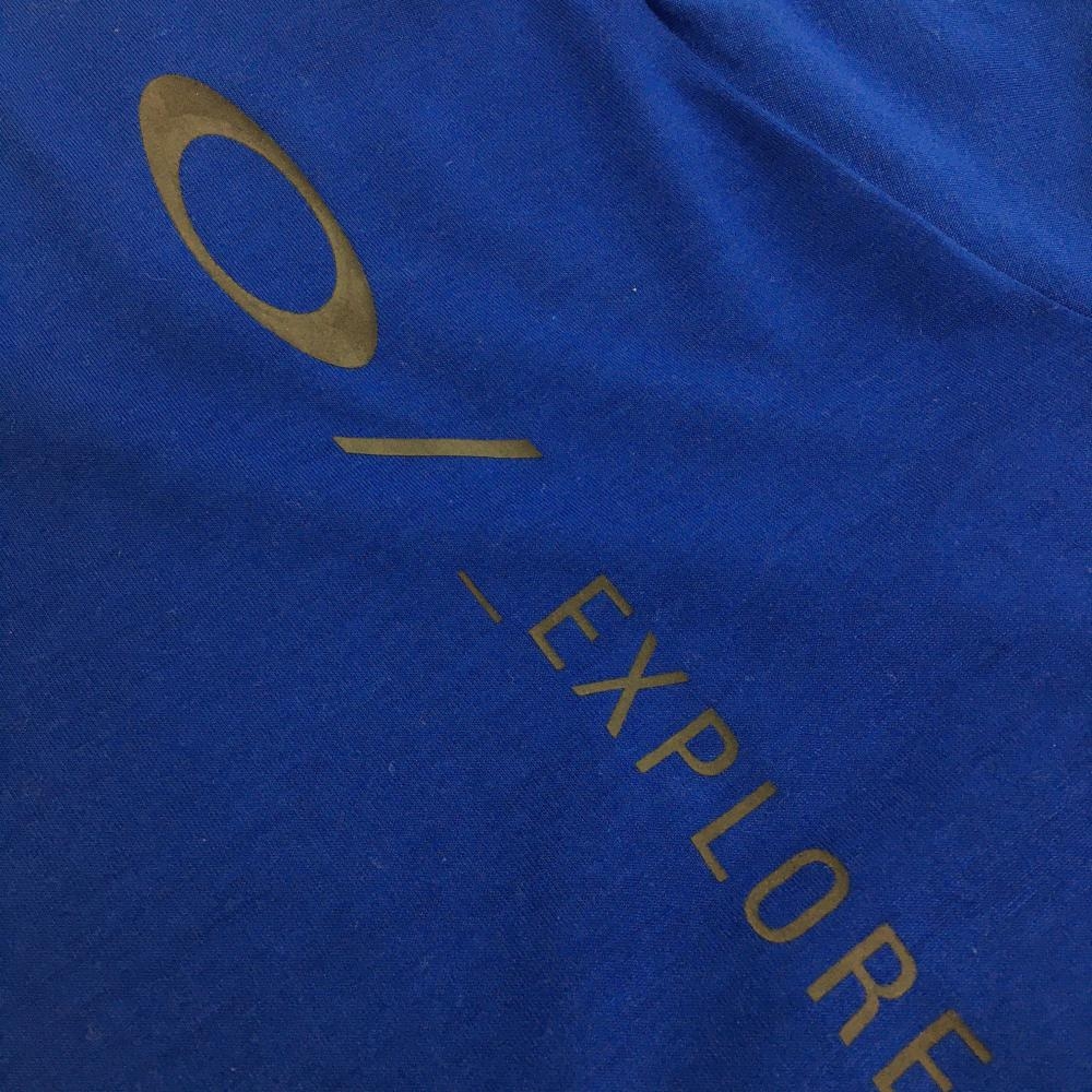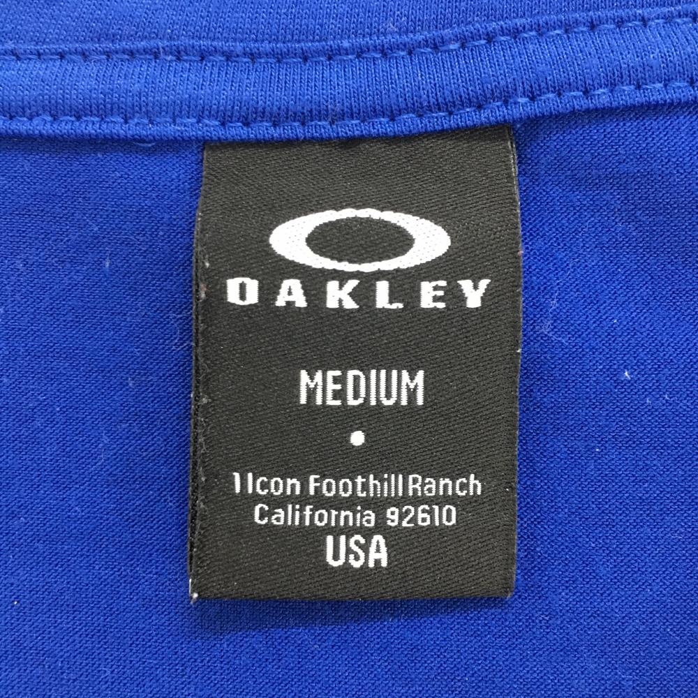 【美品】オークリー Tシャツ ブルー×黒 プリントロゴ メンズ MEDIUM ゴルフウェア Oakley