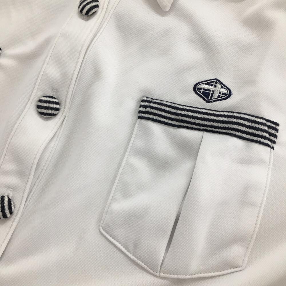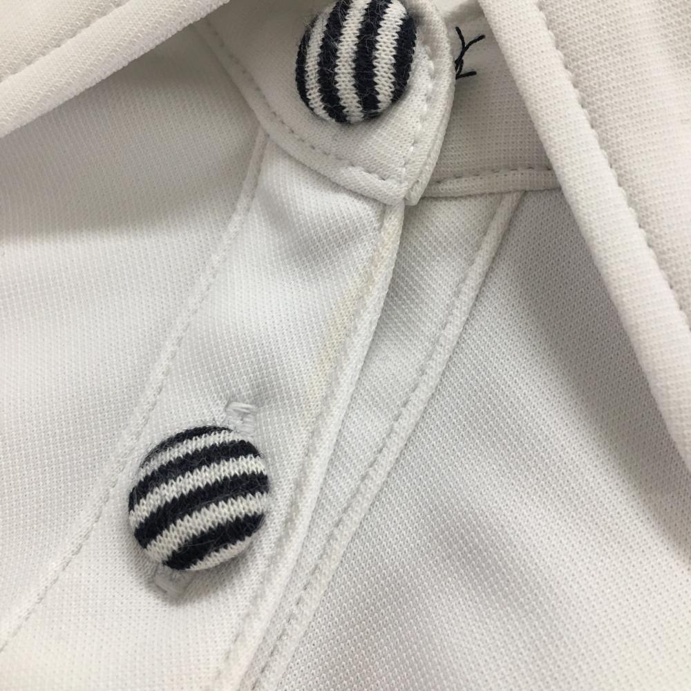 【美品】フィドラ 半袖ポロシャツ 白×黒 一部細ボーダー 胸ポケット レディース M/M ゴルフウェア FIDRA