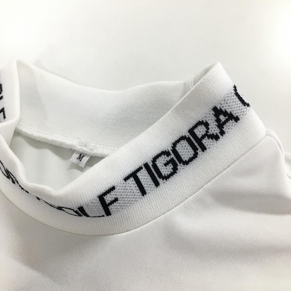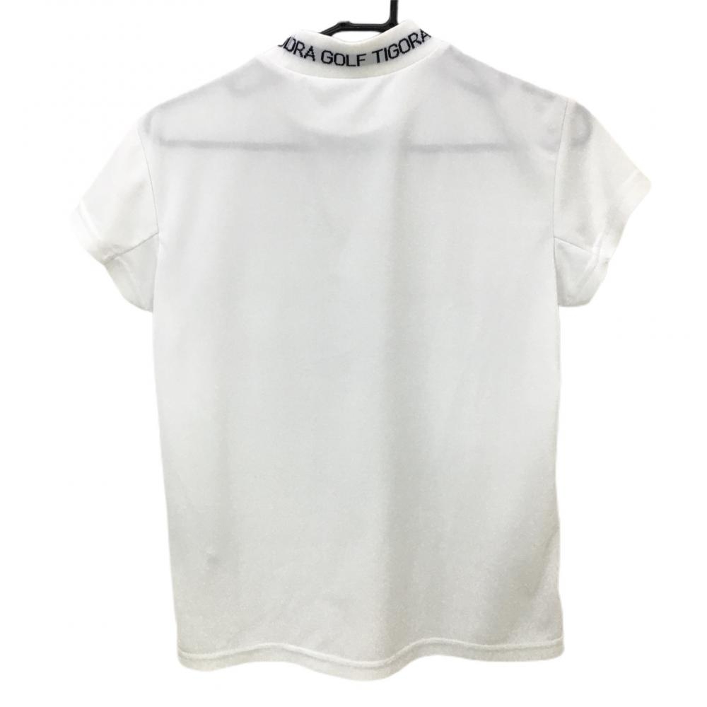 【超美品】ティゴラ 半袖ハイネックシャツ 白×黒 ネックロゴ 胸ポケット レディース M ゴルフウェア TIGORA