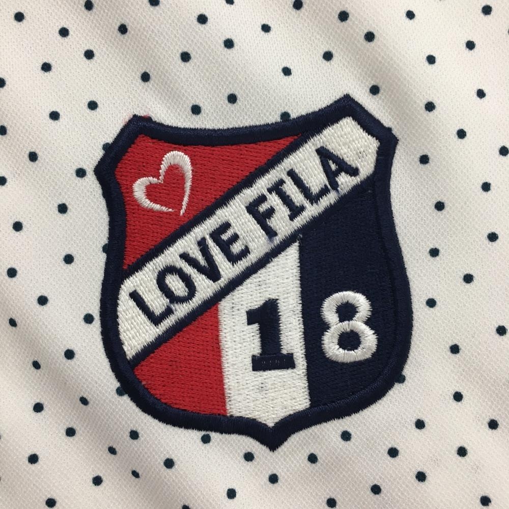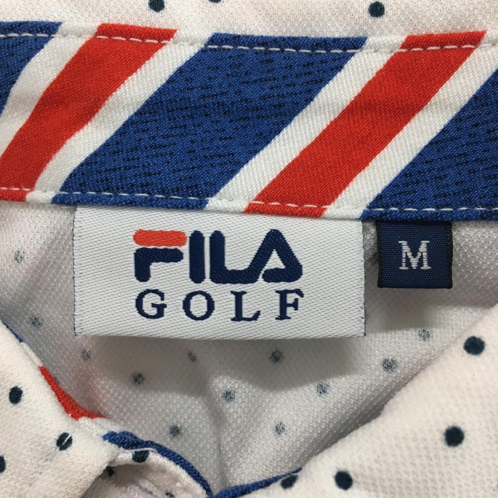 フィラゴルフ 半袖ポロシャツ 白×ネイビー ドット レディース M ゴルフウェア FILA GOLF