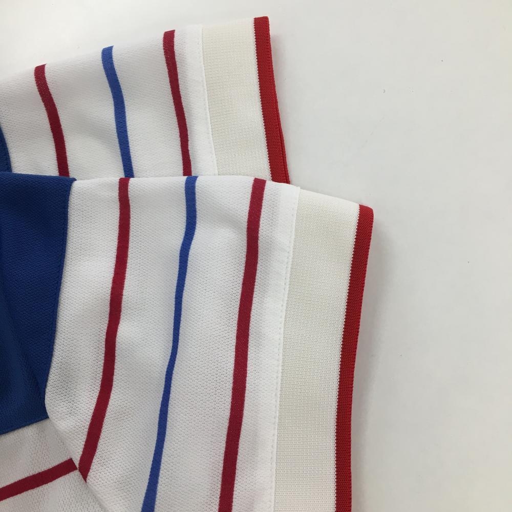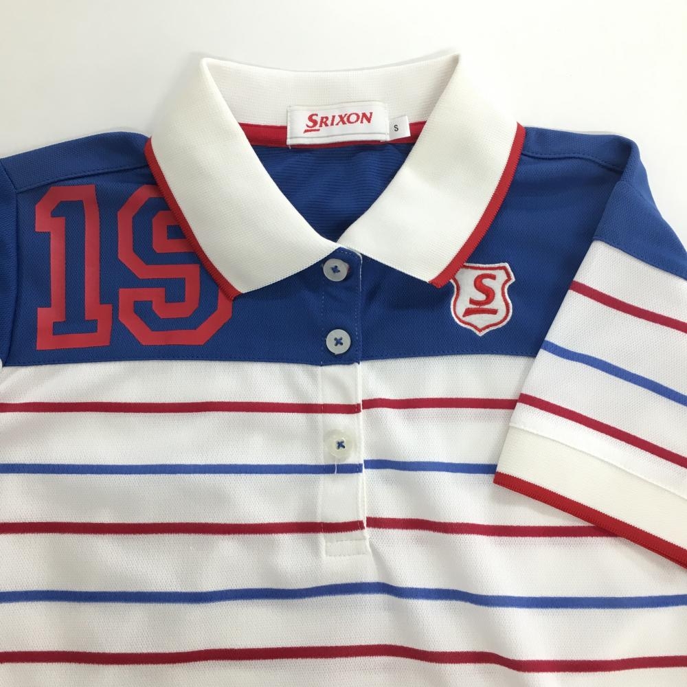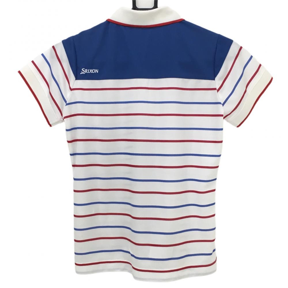 スリクソン 半袖ポロシャツ 白×ブルー ボーダー レディース S ゴルフウェア SRIXON