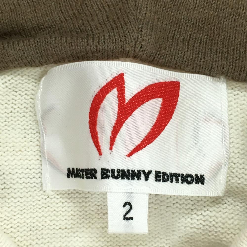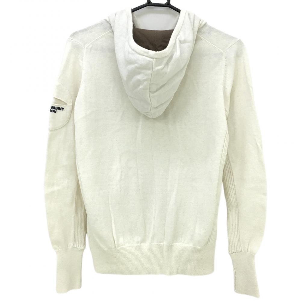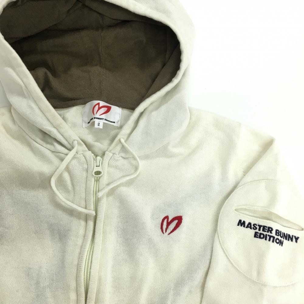 【美品】マスターバニー ニットパーカー 白 ロゴ刺しゅう カシミヤ混 レディース 2(L) ゴルフウェア MASTER BUNNY EDITION