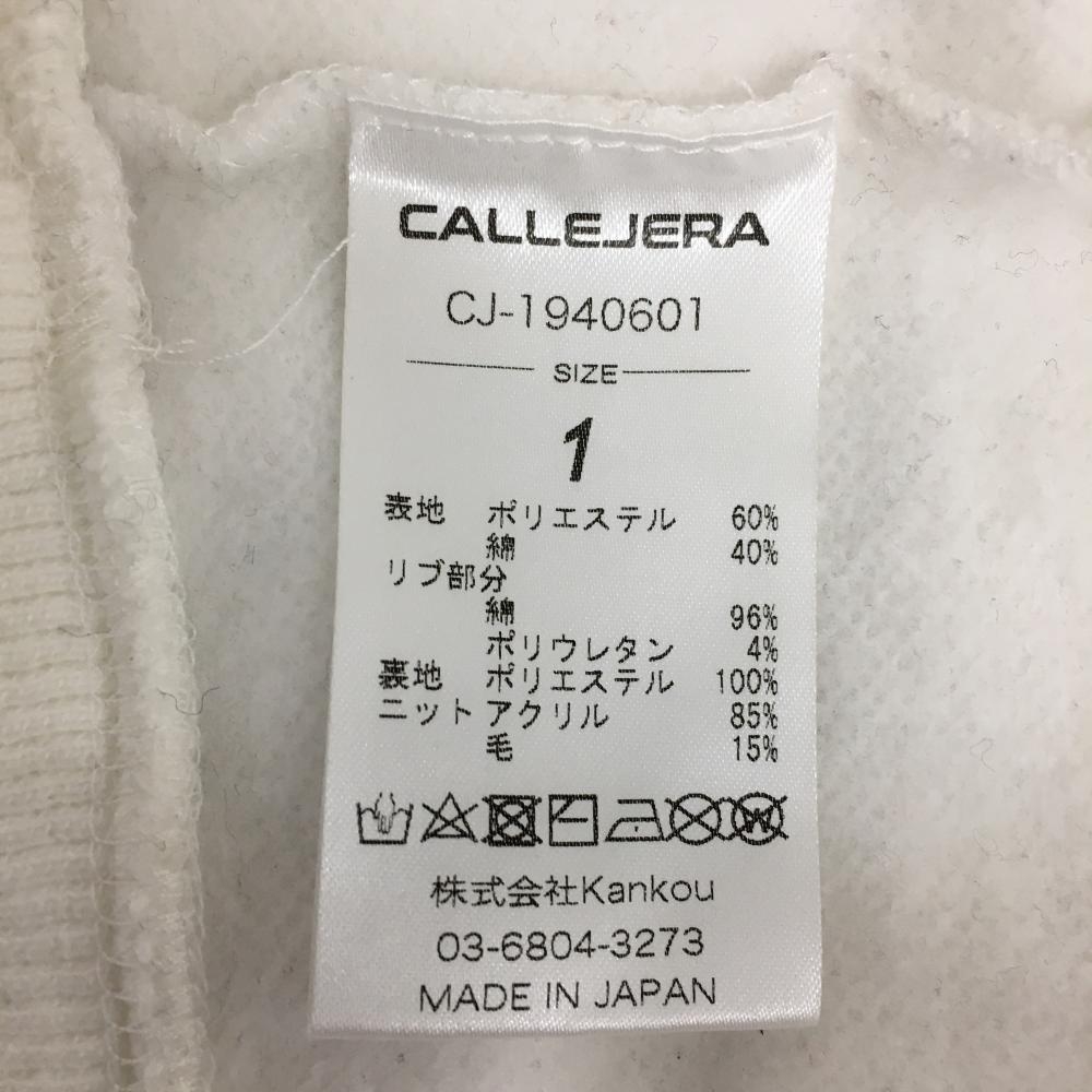 【美品】カジェヘラ 切替トレーナー 白×グリーン 袖ニット 裏起毛 レディース 1 ゴルフウェア CALLEJERA