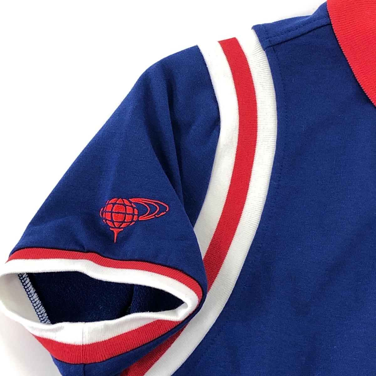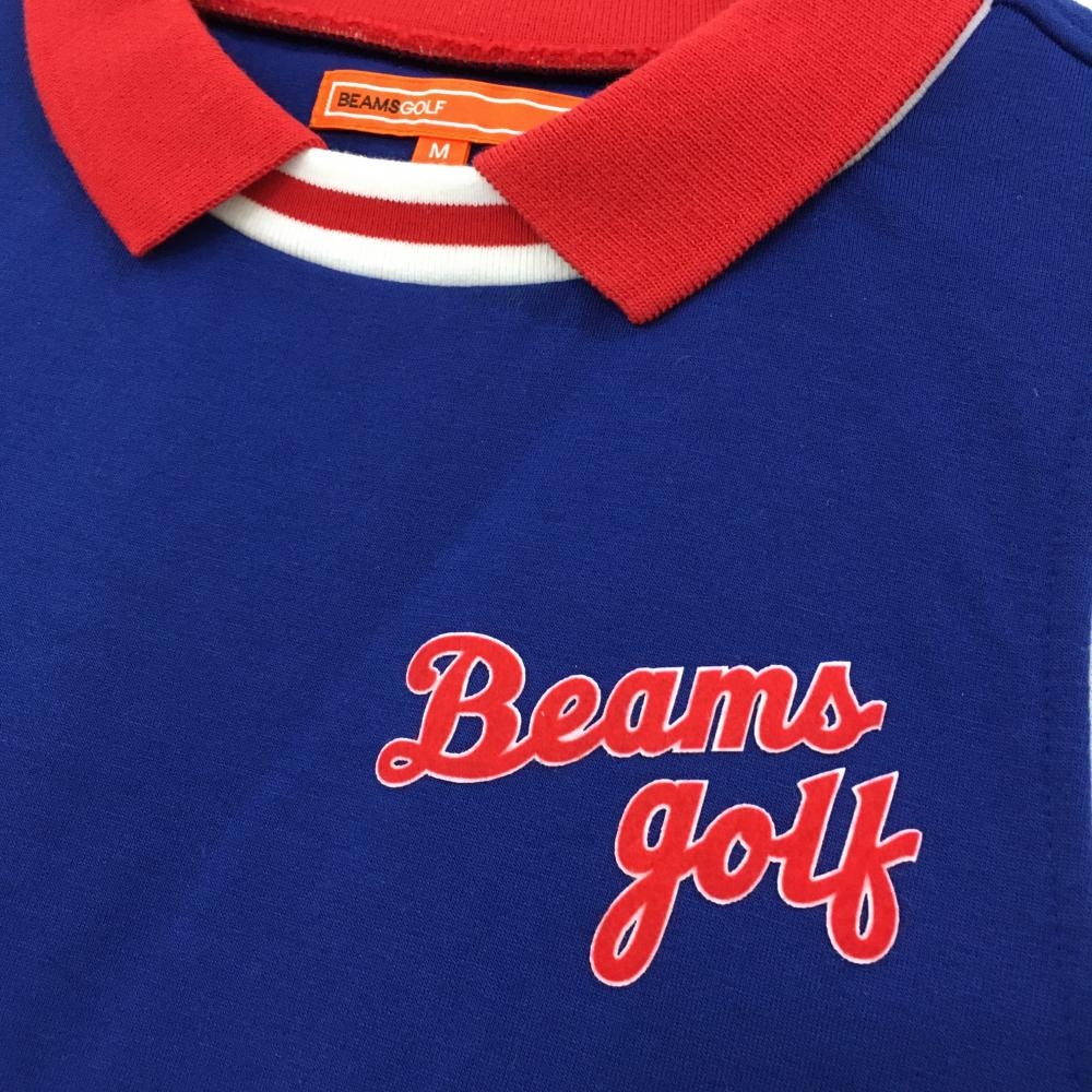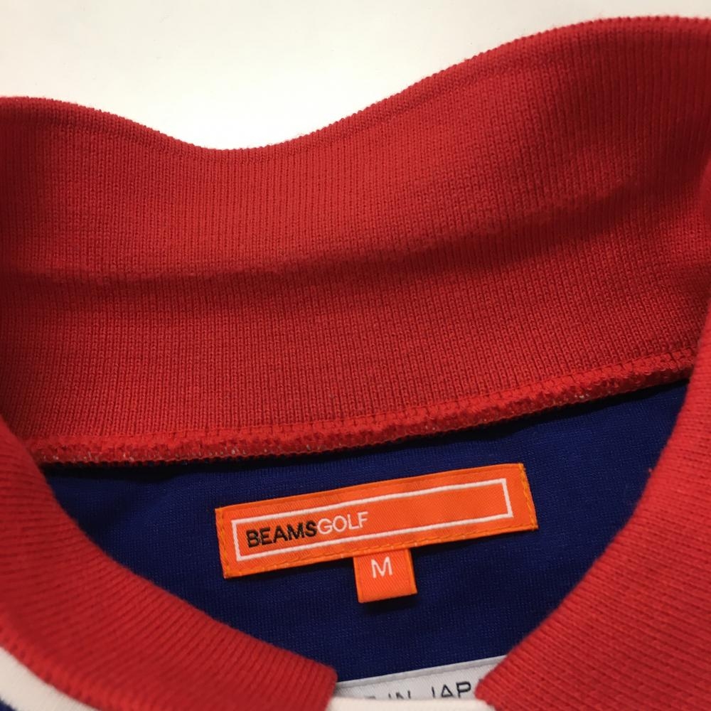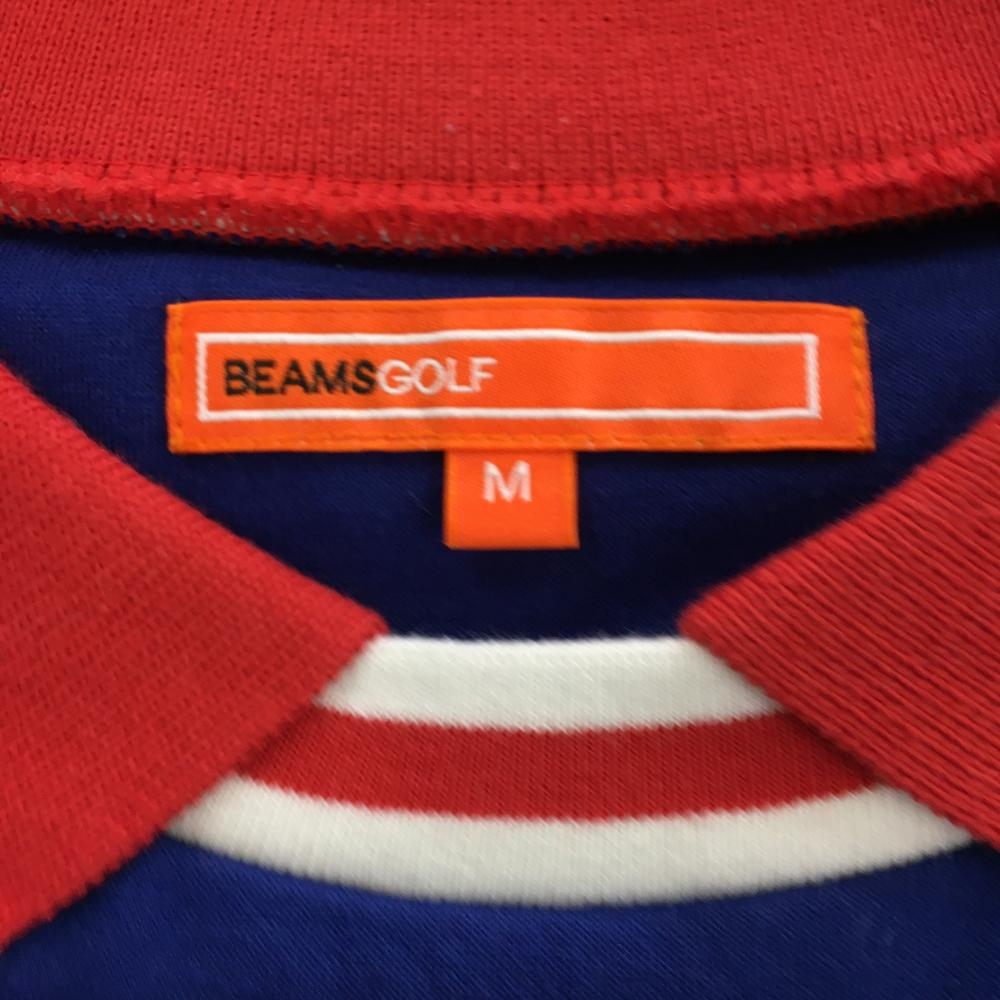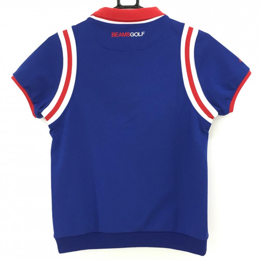 【美品】ビームスゴルフ 襟付き半袖シャツ ブルー×レッド 袖ライン 厚手 レディース M ゴルフウェア BEAMS GOLF