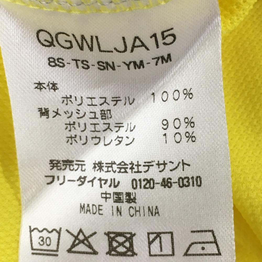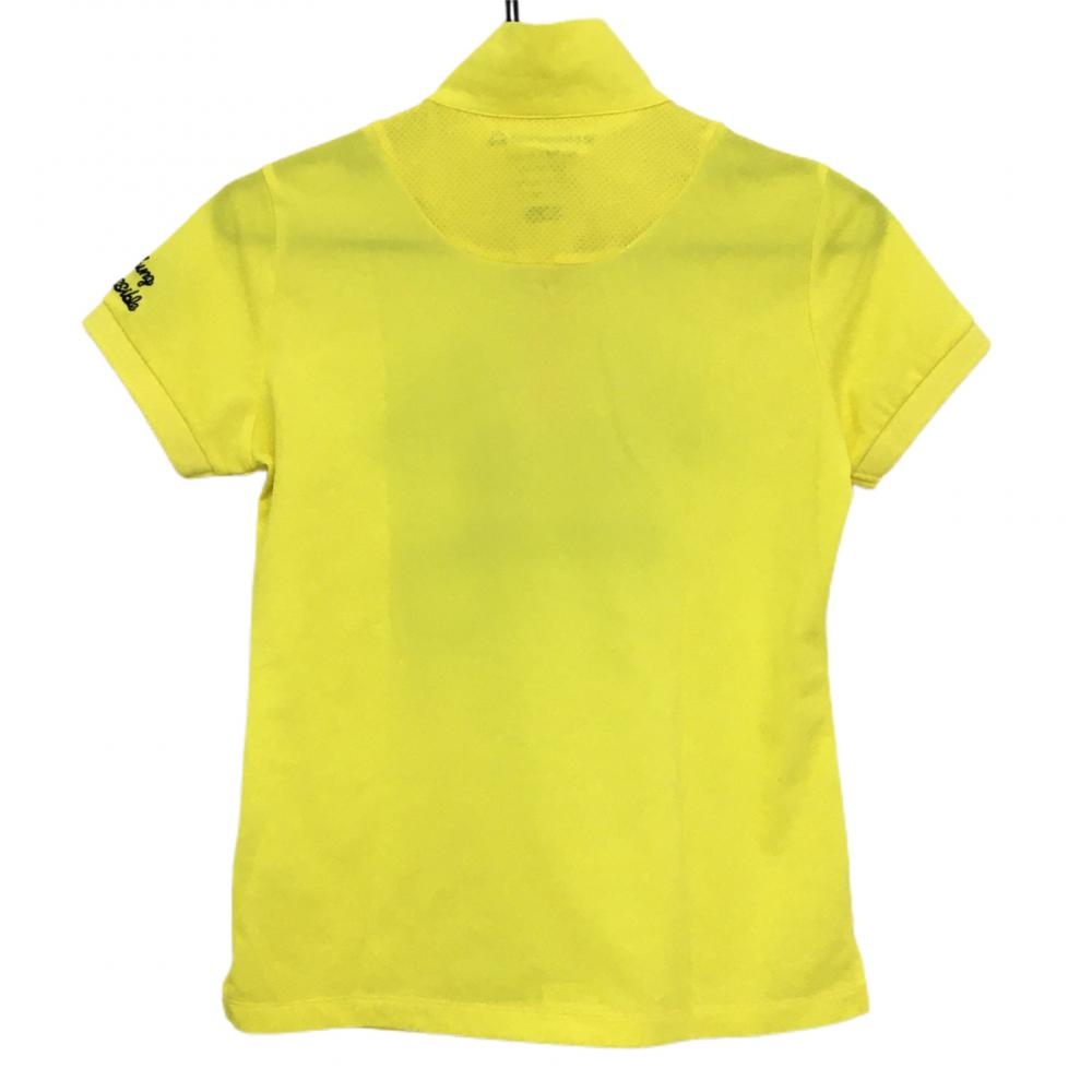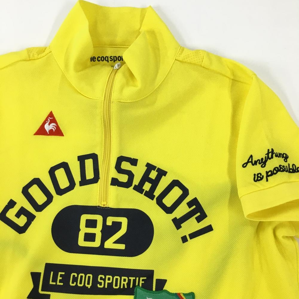 【美品】ルコック 半袖ハイネックシャツ イエロー×ネイビー ハーフジップ プリントロゴ レディース M ゴルフウェア le coq sportif