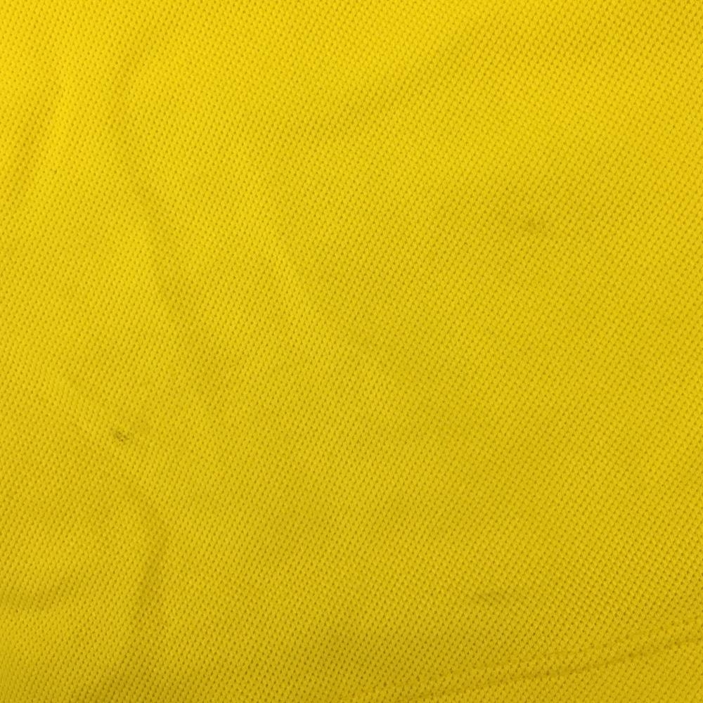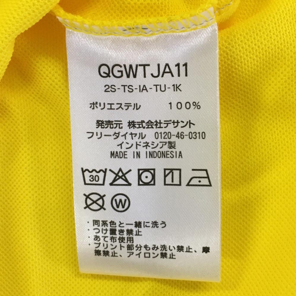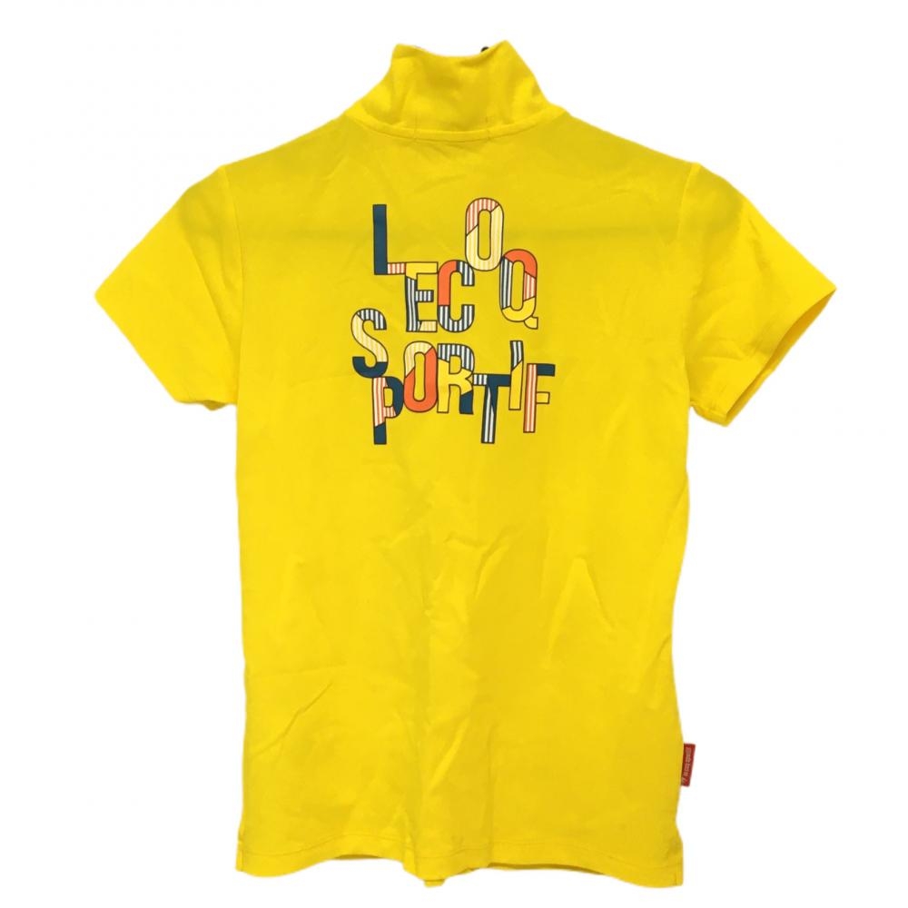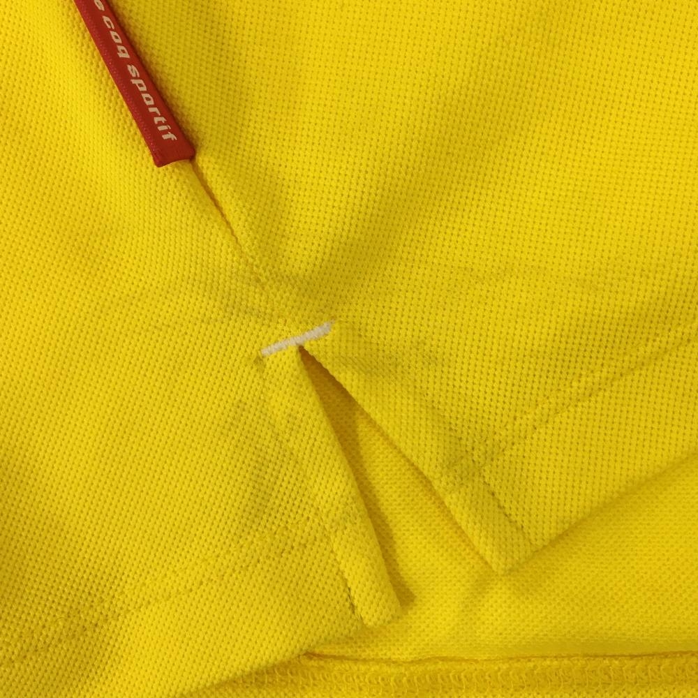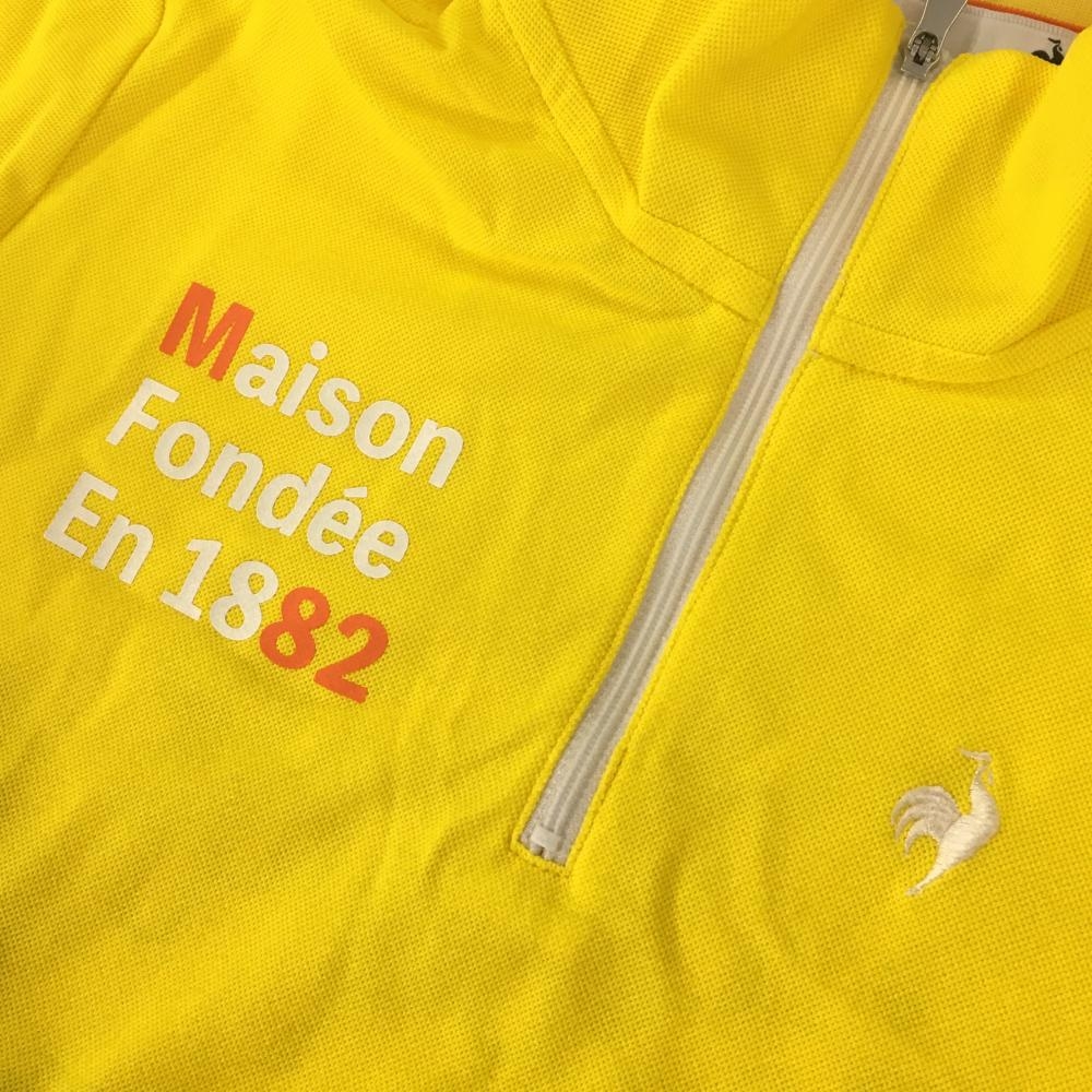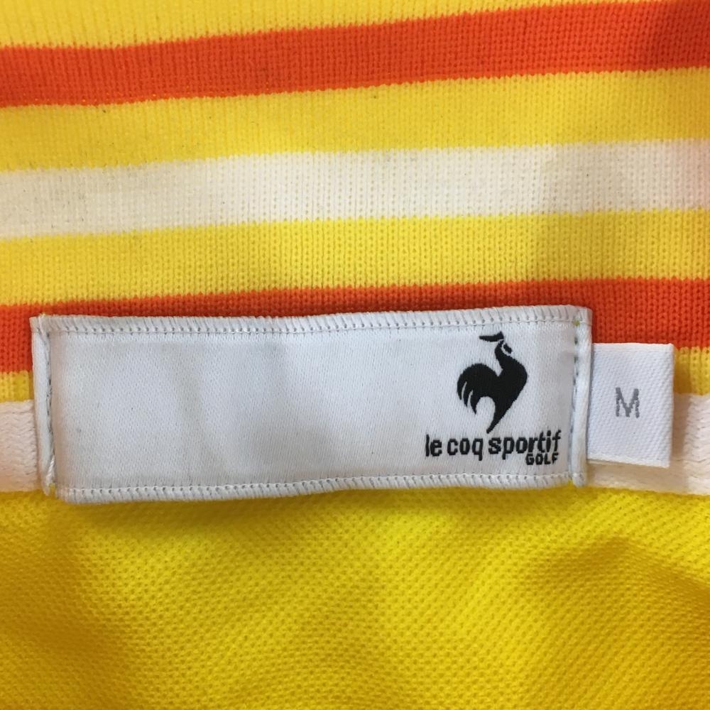 【美品】ルコック 半袖ハイネックシャツ イエロー×白 ロゴ刺しゅう ネック内ボーダー レディース M ゴルフウェア le coq sportif