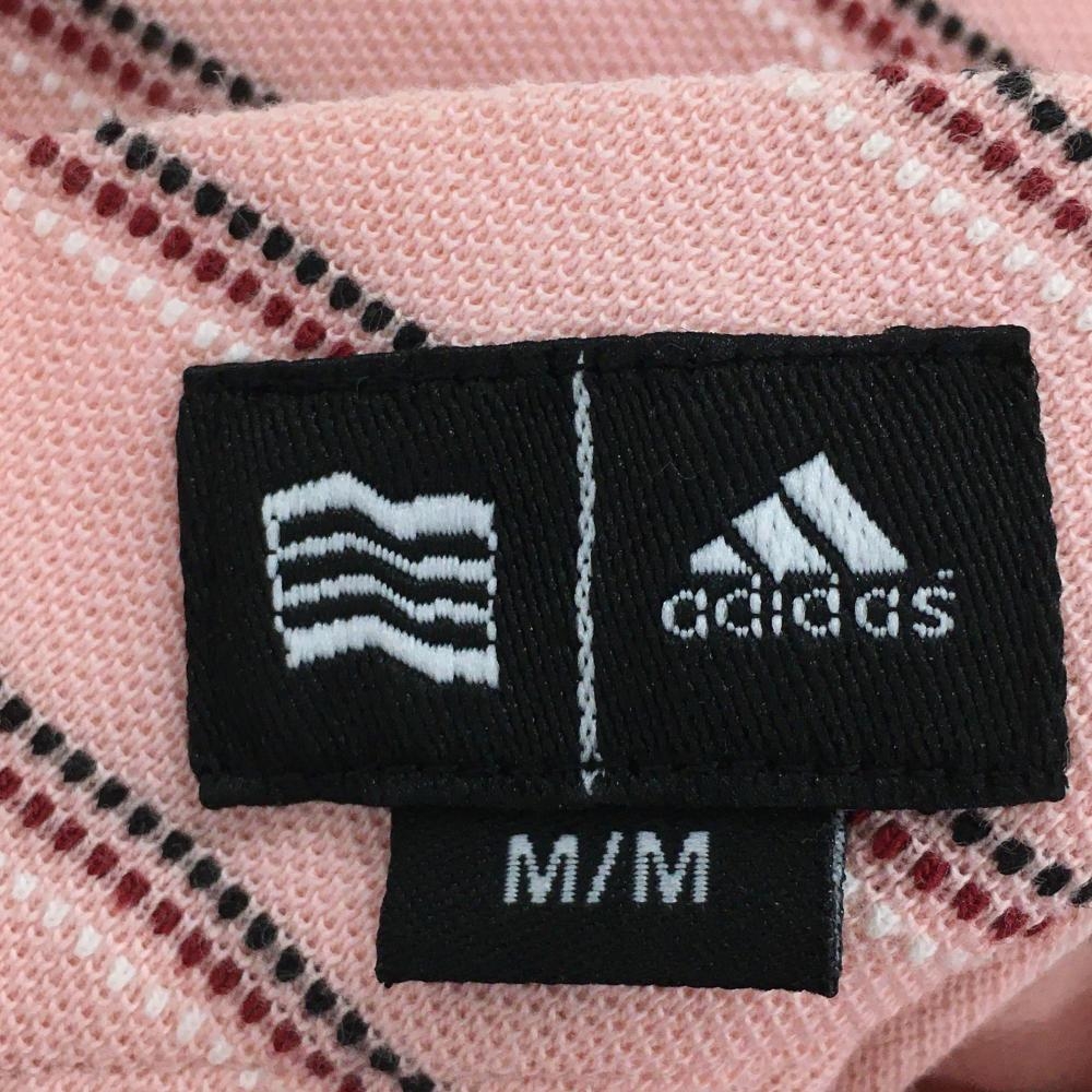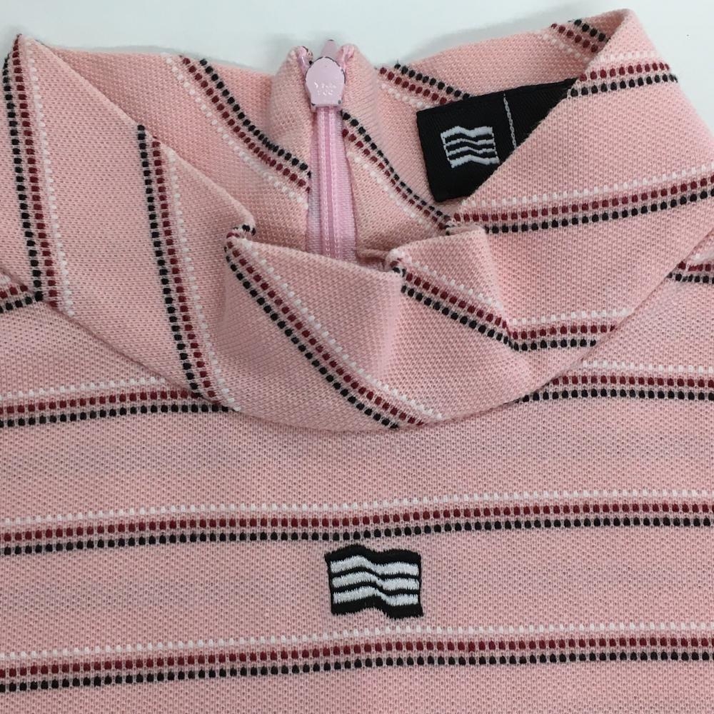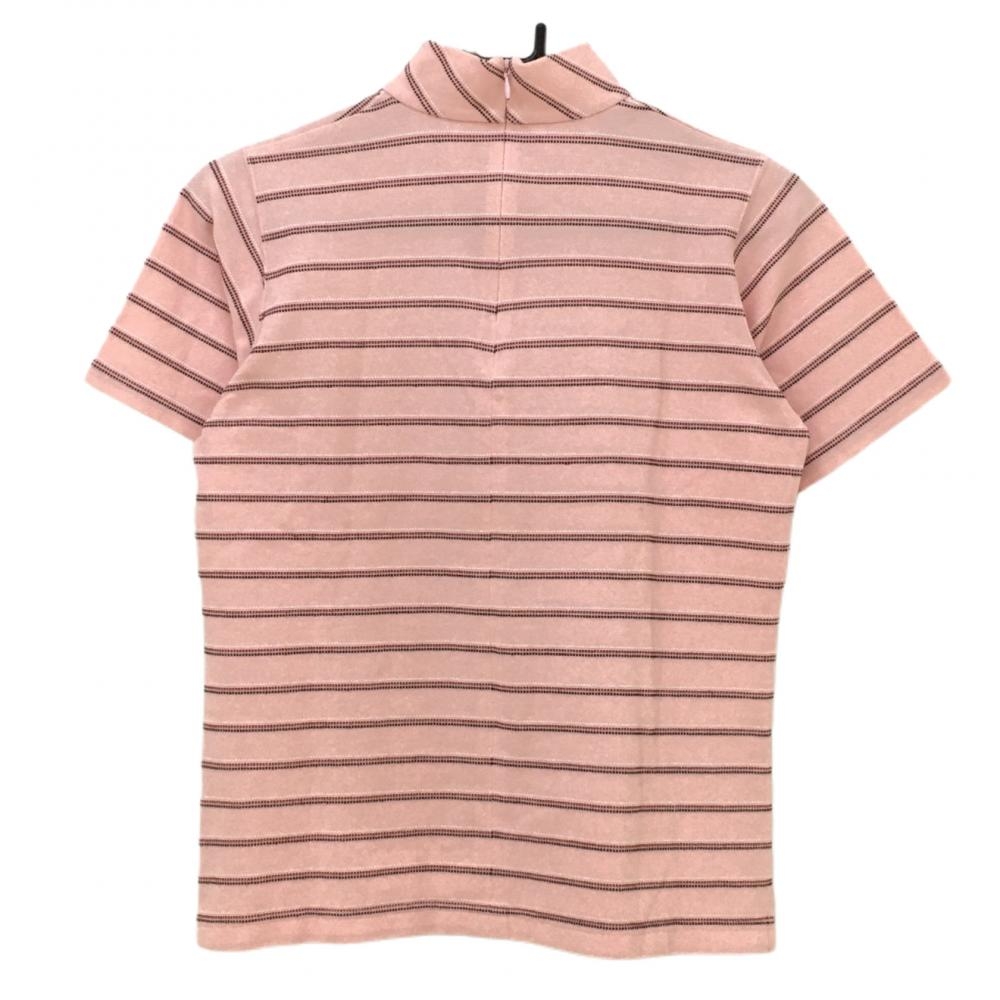 アディダス 半袖ハイネックシャツ ピンク×黒 ボーダー ネック下刺しゅう レディース M/M ゴルフウェア adidas