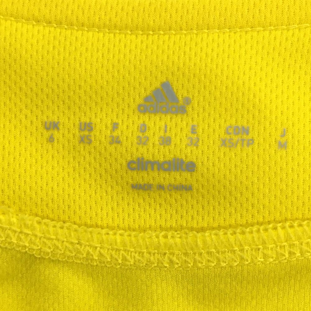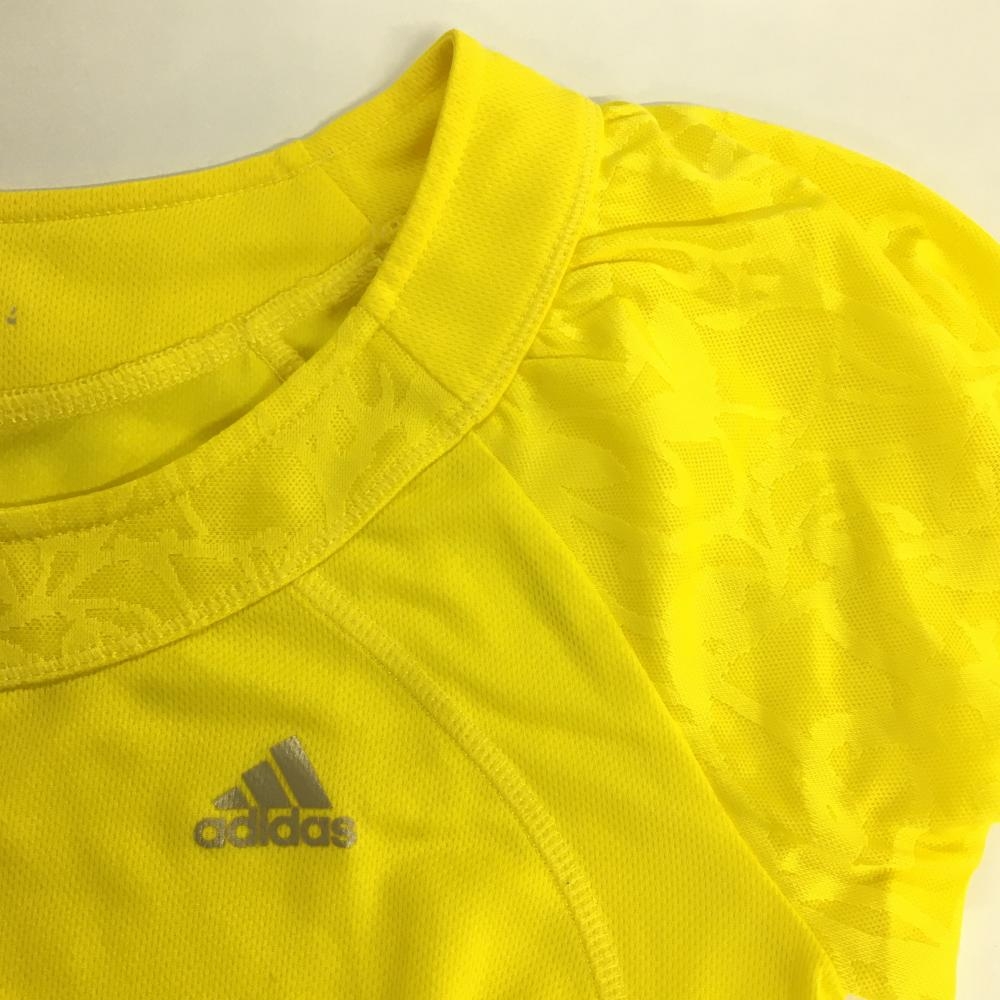 【美品】アディダス 半袖Tシャツ イエロー×ゴールド パフスリーブ ロゴプリント レディース M ゴルフウェア adidas