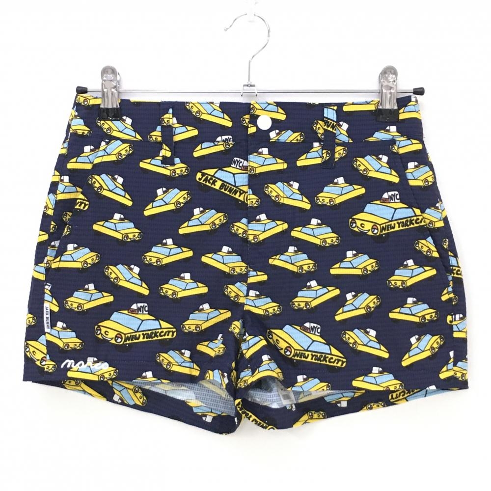 ジャックバニー ショートパンツ ネイビー×イエロー タクシー柄 サッカー生地 レディース 0(S) ゴルフウェア 2022年モデル Jack Bunny
