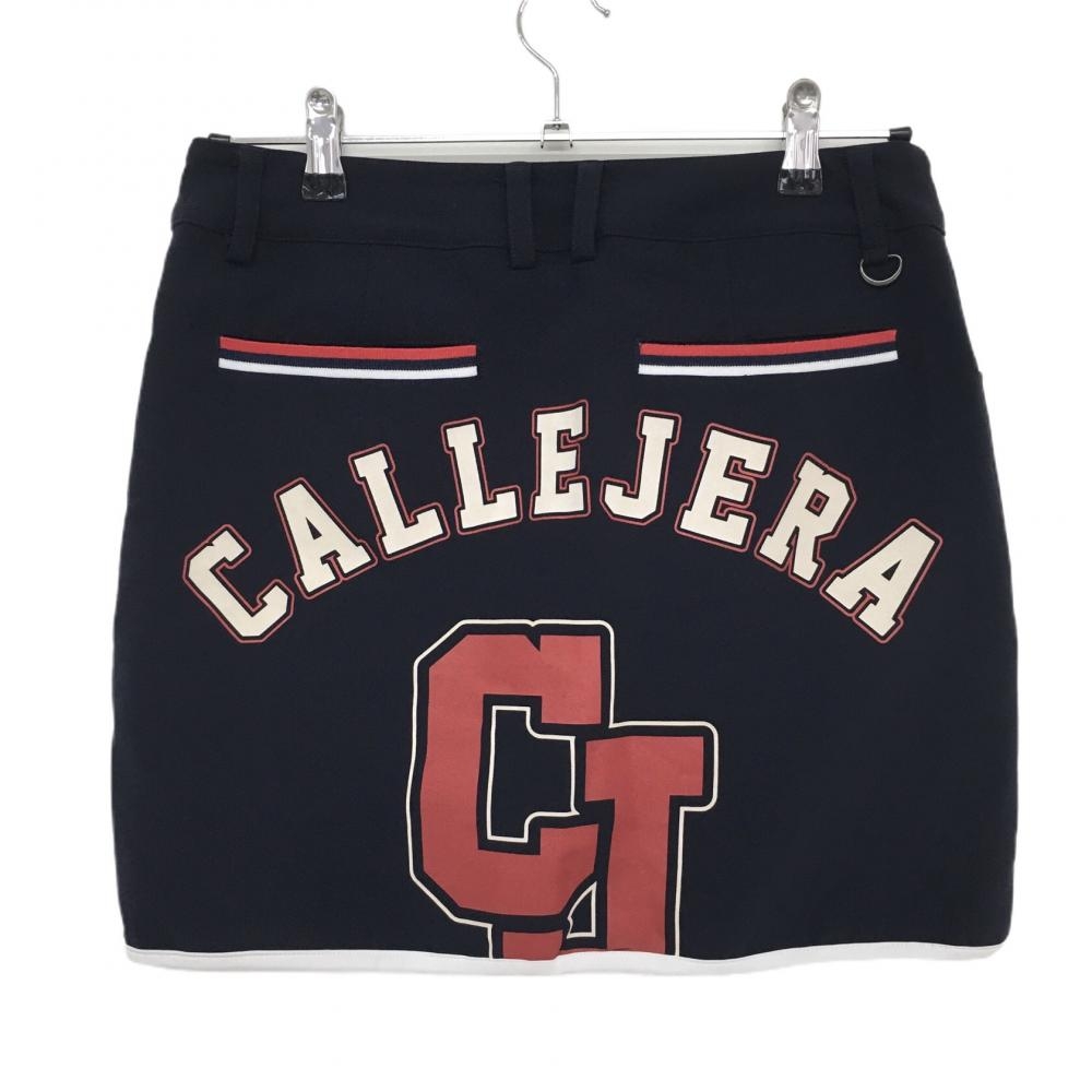 【超美品】カジェヘラ スカート ネイビー×白 ビッグロゴプリント レディース 1 ゴルフウェア