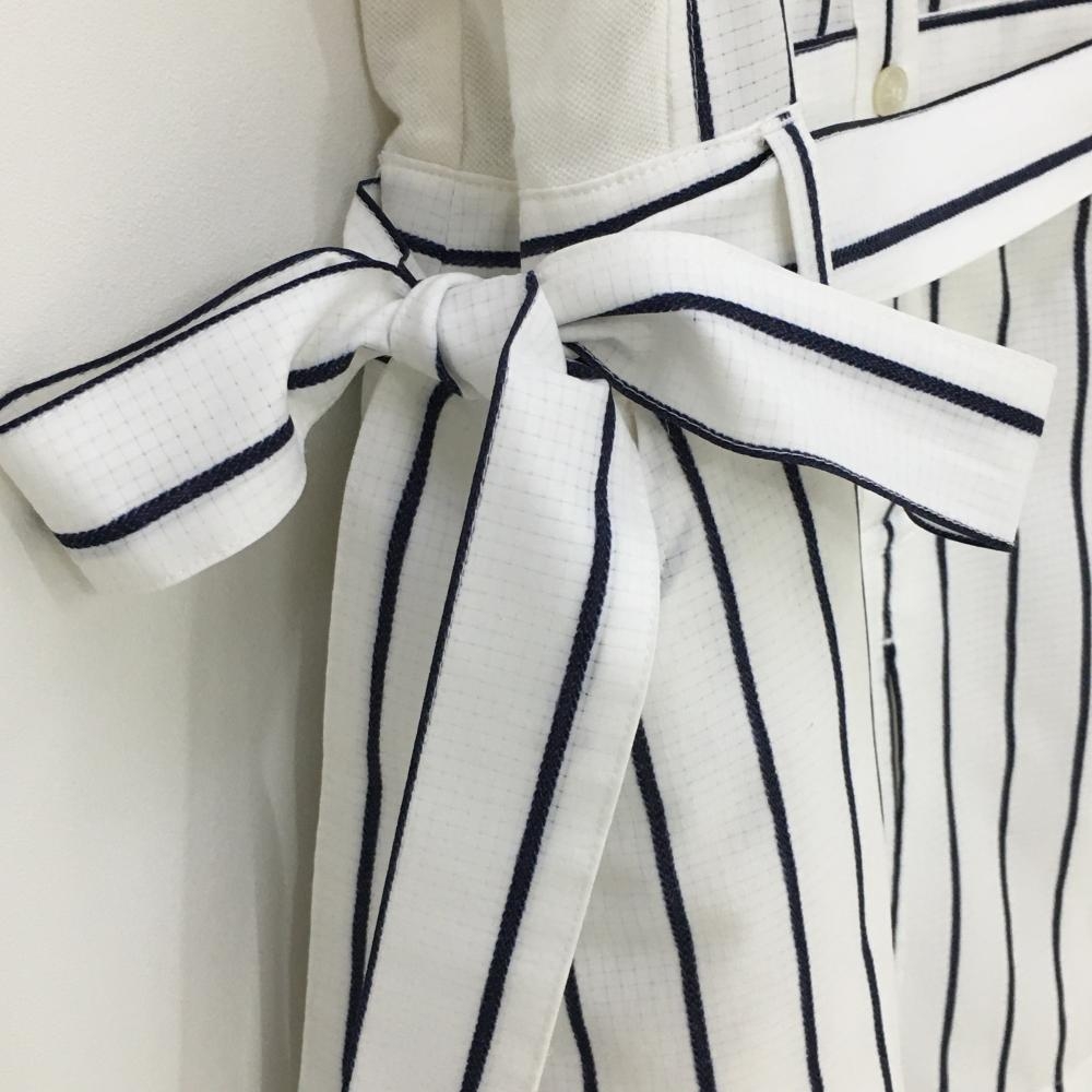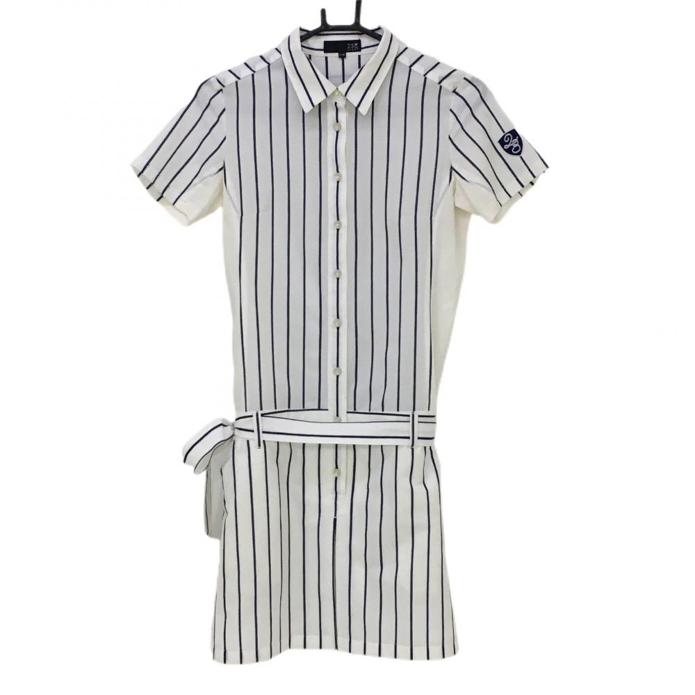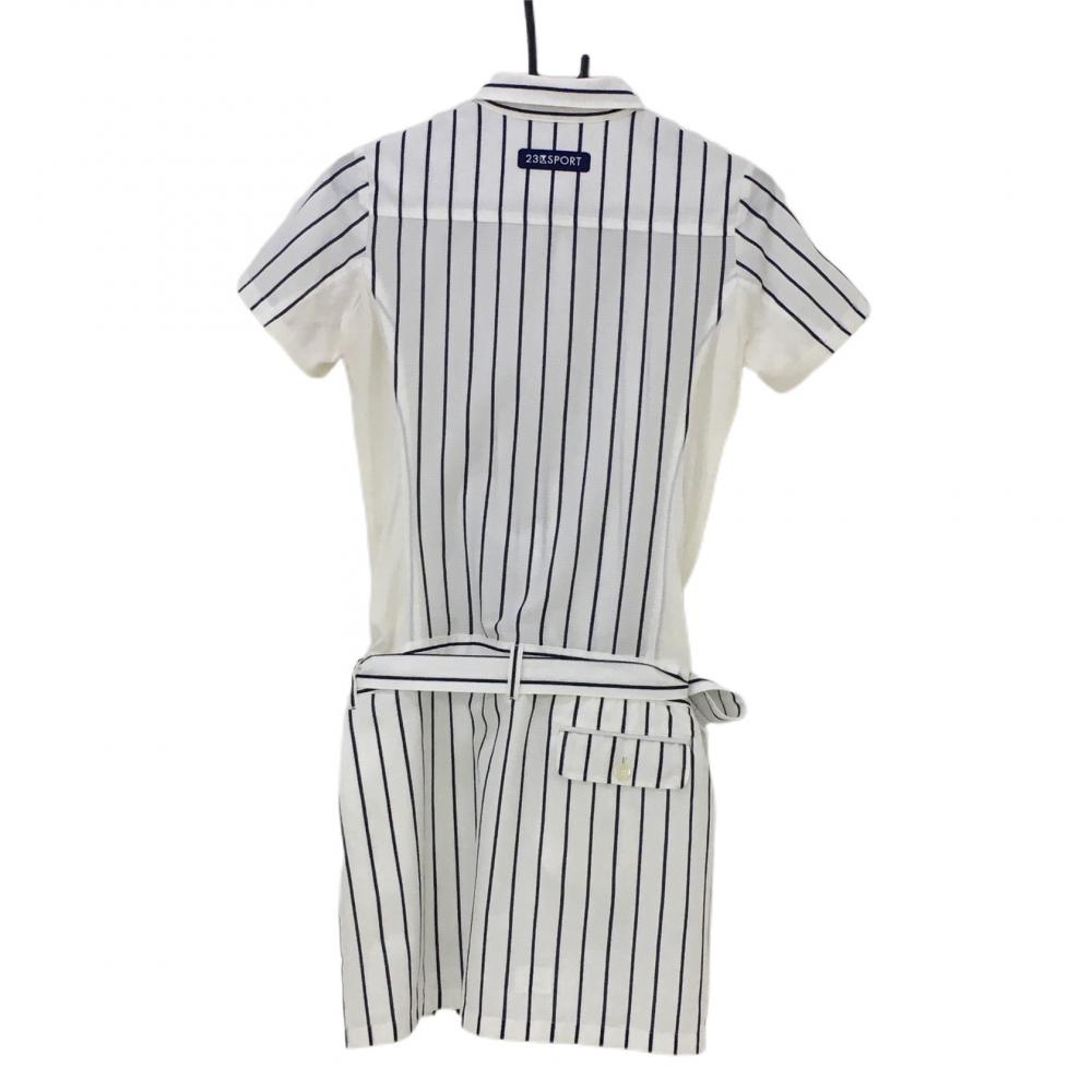 23区スポーツ ワンピース 白×ネイビー 格子織生地 ストライプ柄 共布ベルト付き 袖ワッペン レディース S~M ゴルフウェア 23区