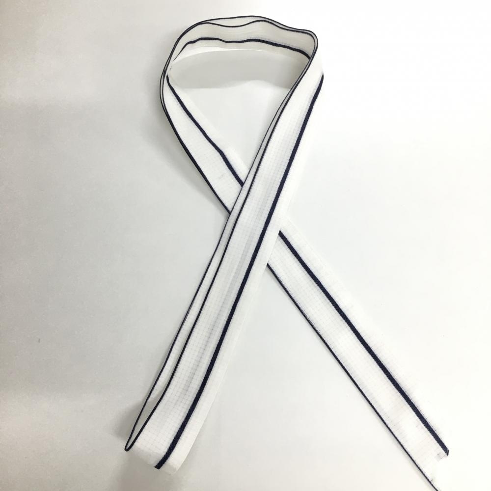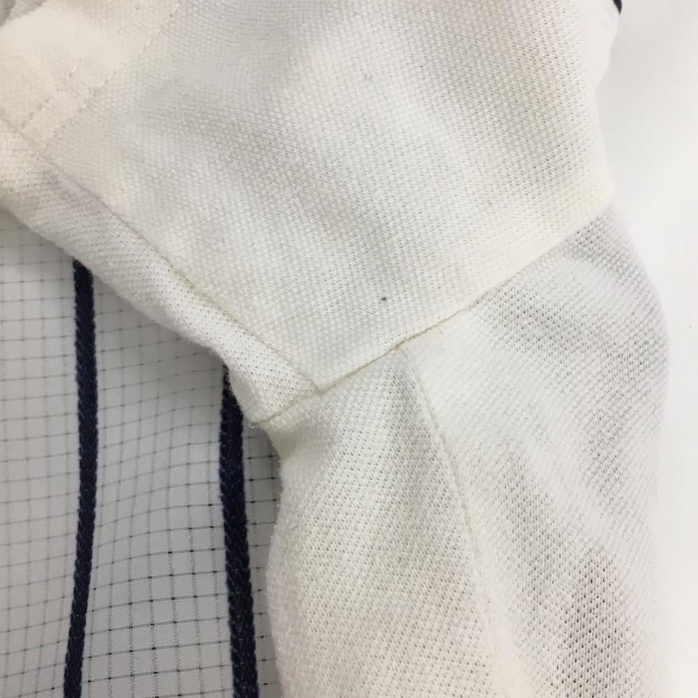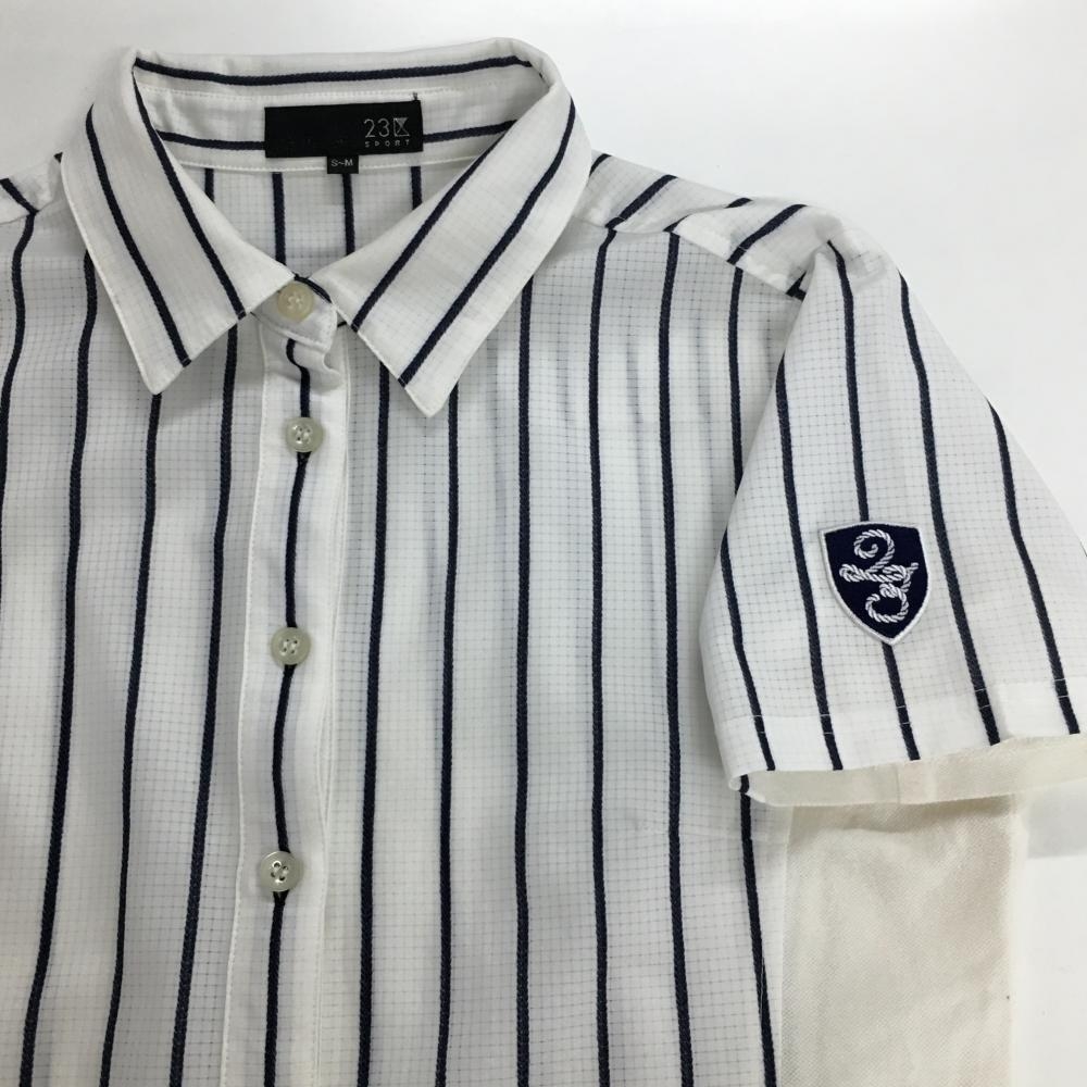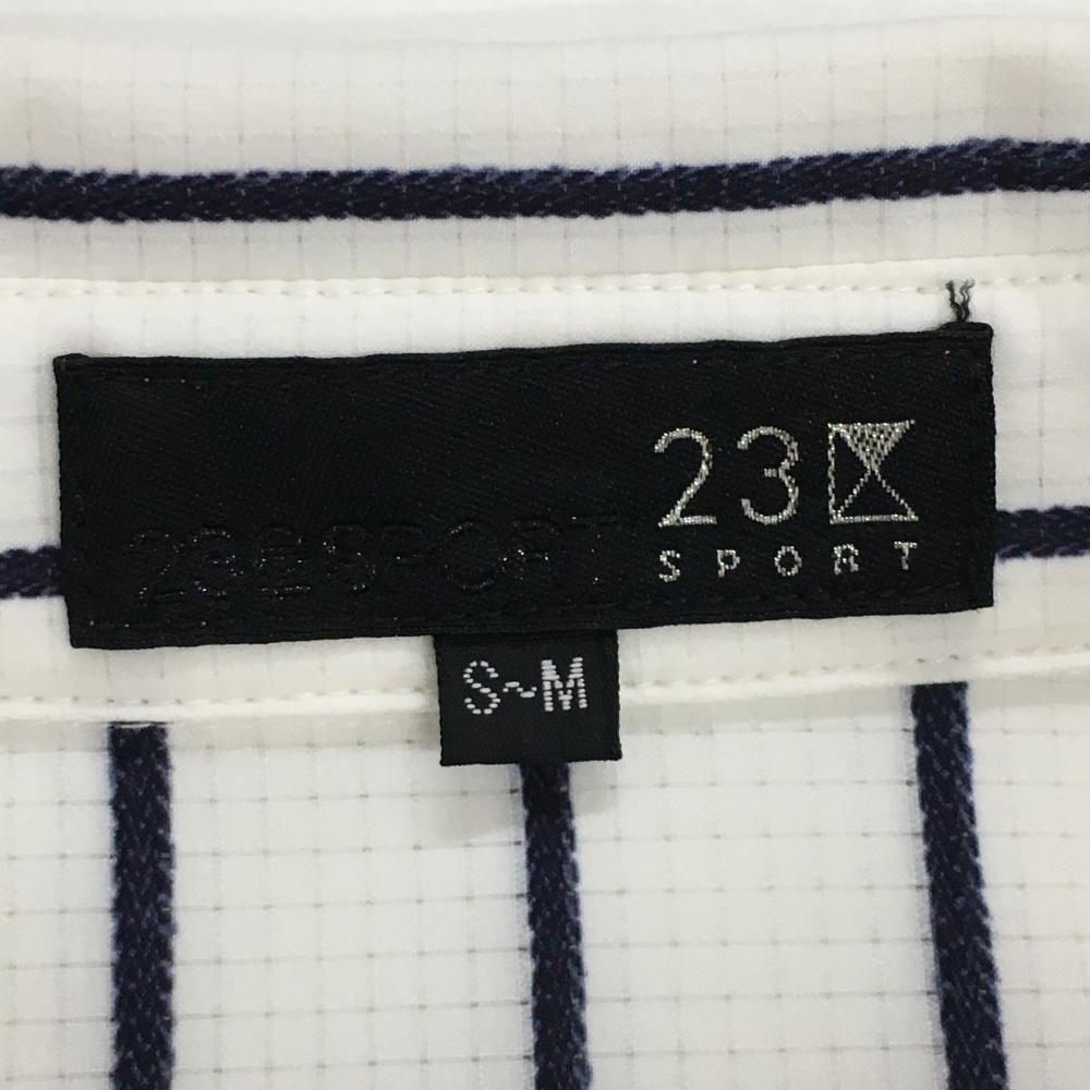 23区スポーツ ワンピース 白×ネイビー 格子織生地 ストライプ柄 共布ベルト付き 袖ワッペン レディース S~M ゴルフウェア 23区