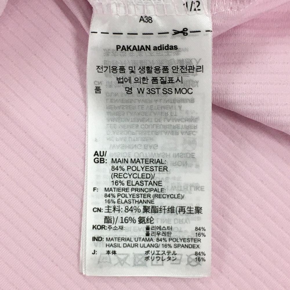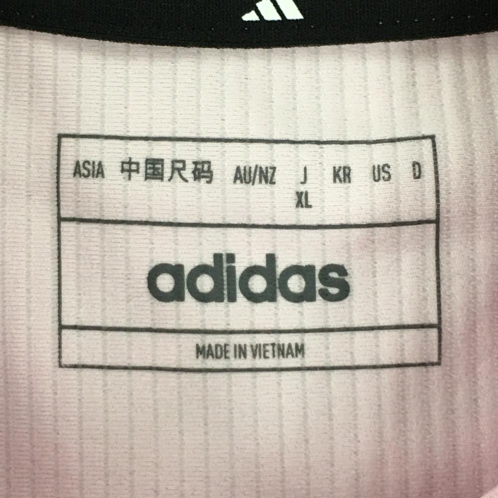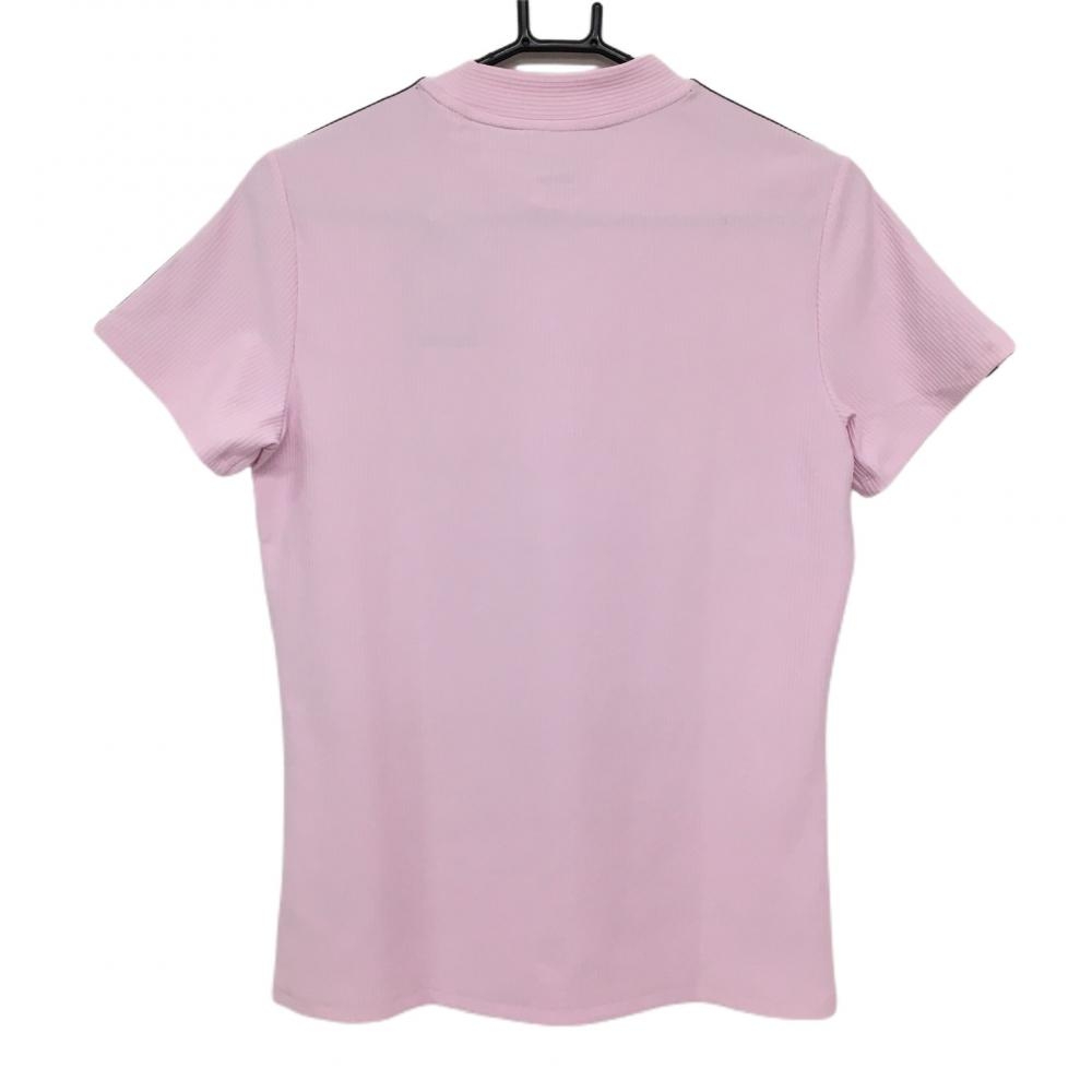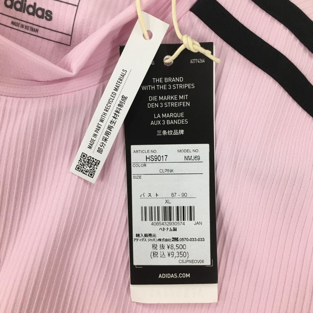 【新品】アディダス 半袖ハイネックシャツ ピンク×黒 肩3ライン レディース XL ゴルフウェア 2022年モデル adidas
