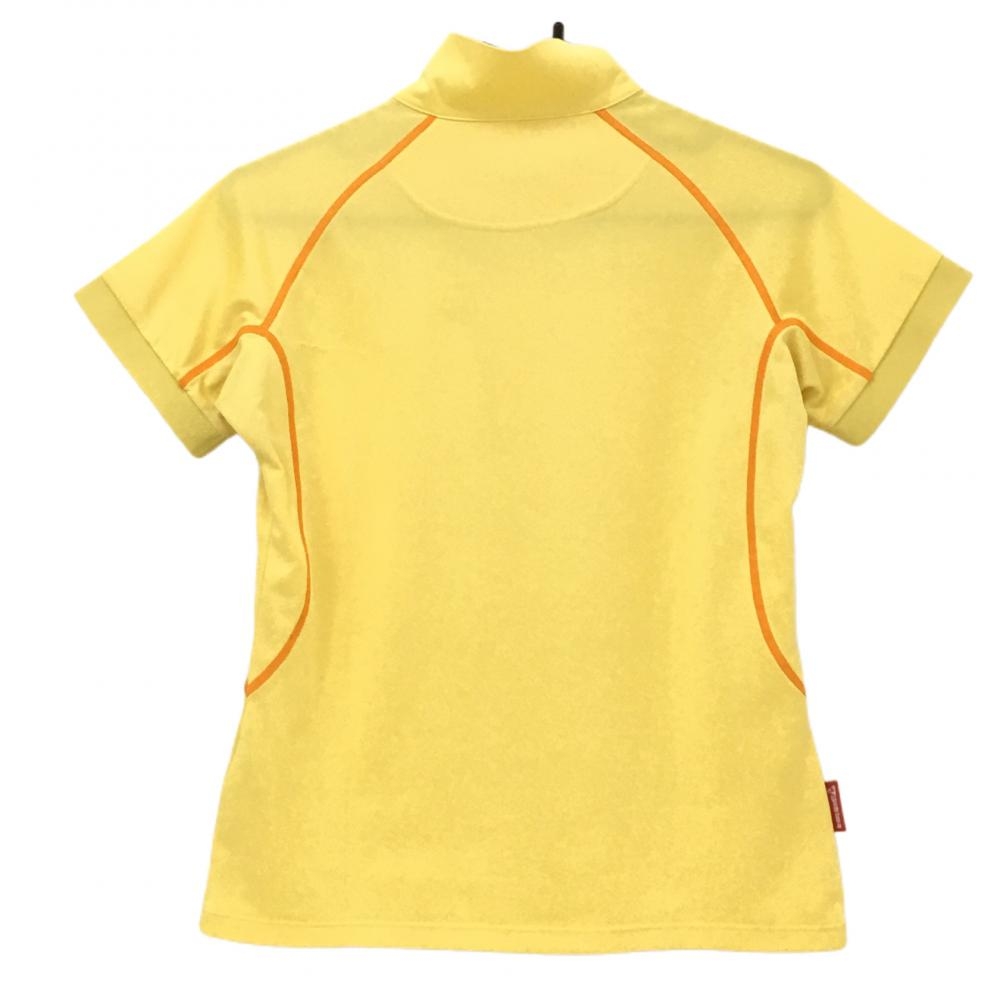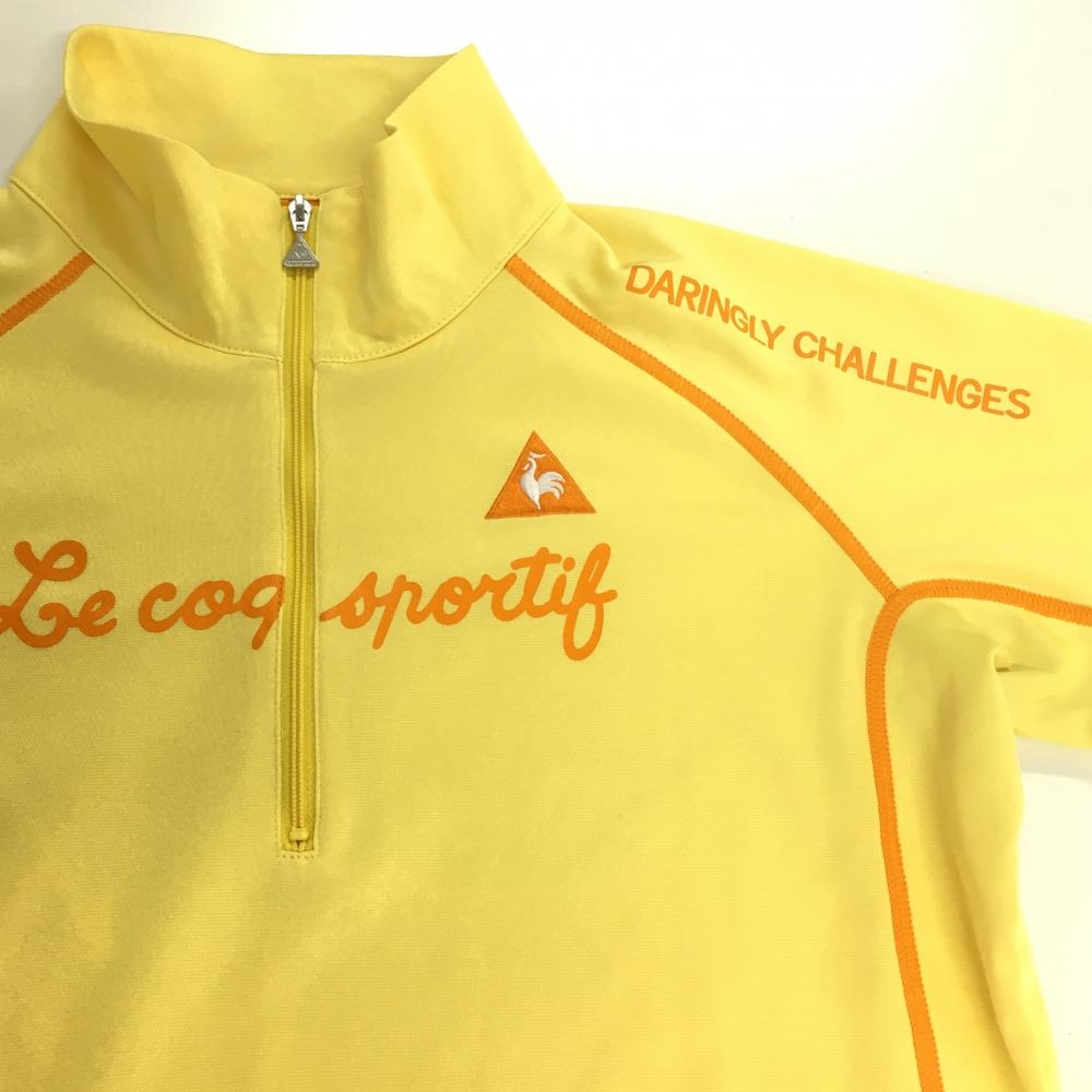 【超美品】ルコック 半袖ハイネックシャツ イエロー×オレンジ ハーフジップ ロゴ刺しゅう レディース L ゴルフウェア le coq sportif