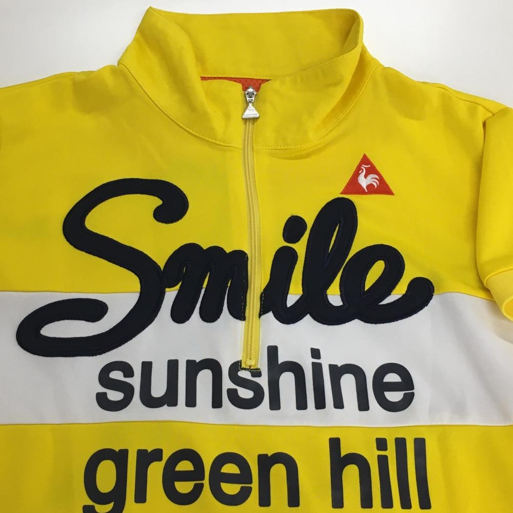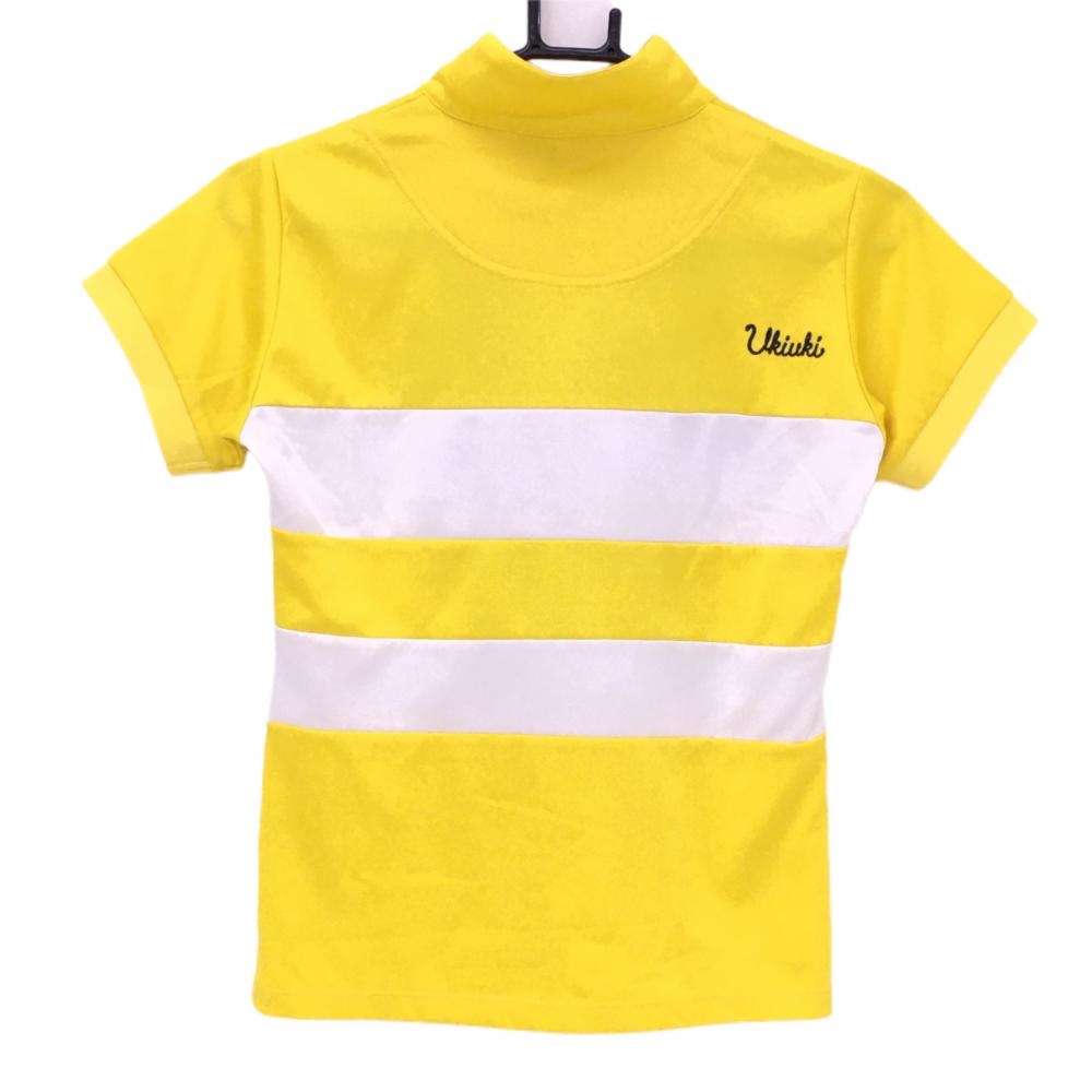 【超美品】ルコック 半袖ハイネックシャツ イエロー×白 ハーフジップ レディース M ゴルフウェア le coq sportif