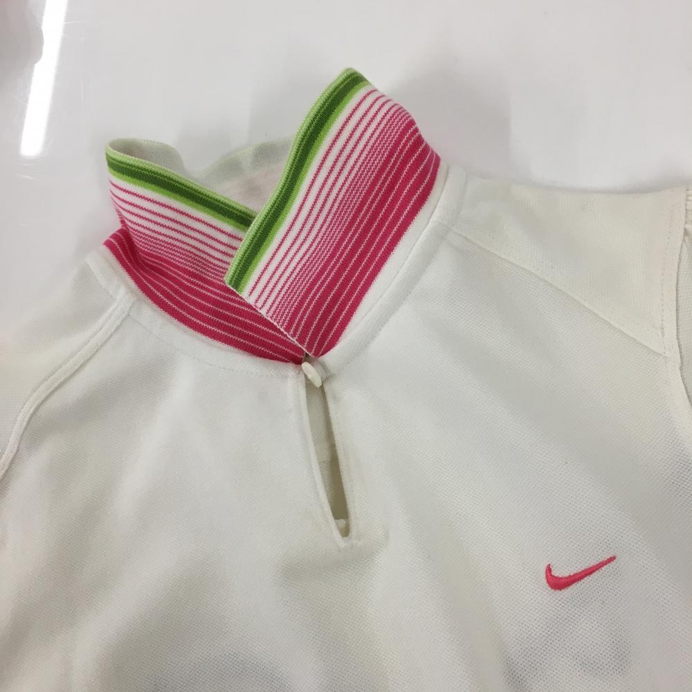 ナイキ 半袖ワンピース 白×ピンク ロゴ刺しゅう 襟裏ボーダー ベルト付き レディース M ゴルフウェア NIKE