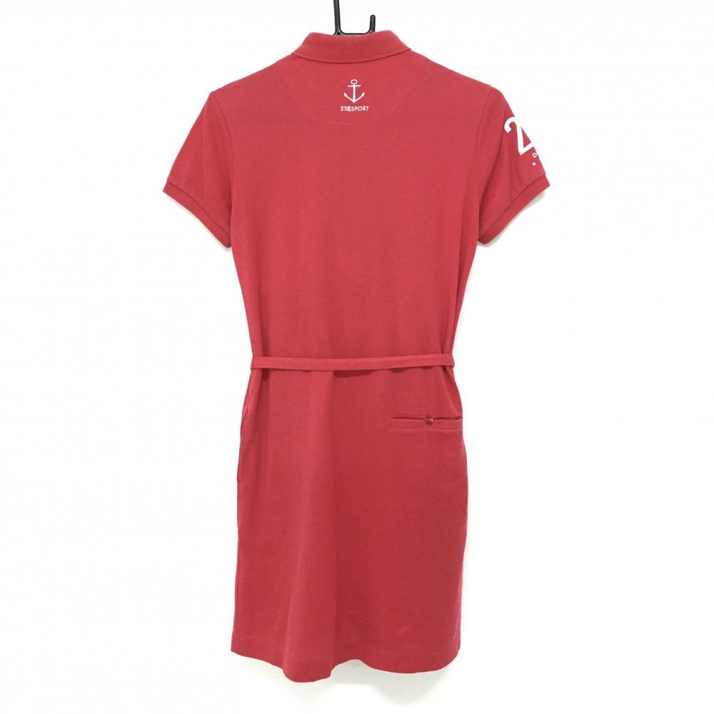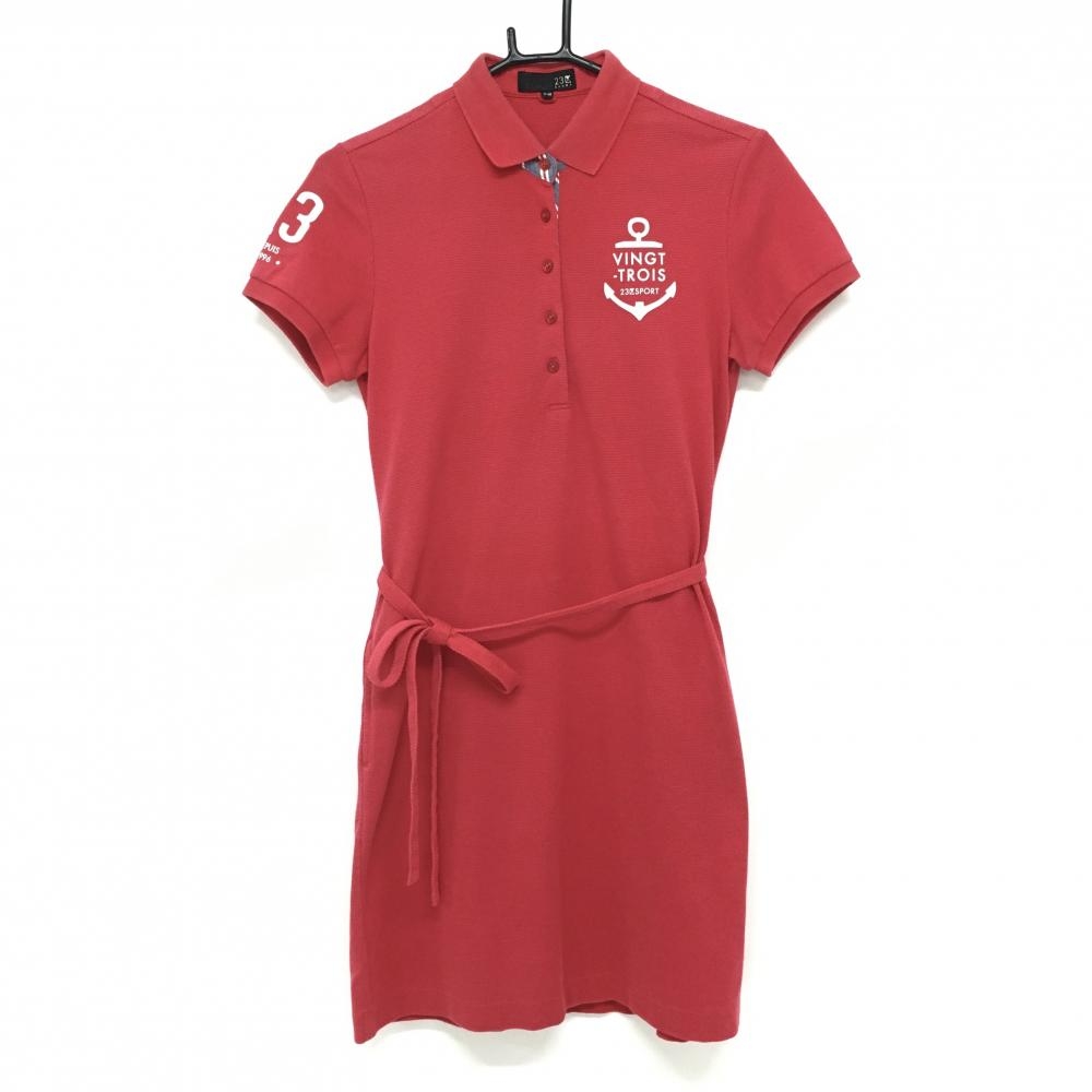 23区スポーツ ワンピース レッド ロゴプリント 共布ベルト付き レディース S-M ゴルフウェア 23区