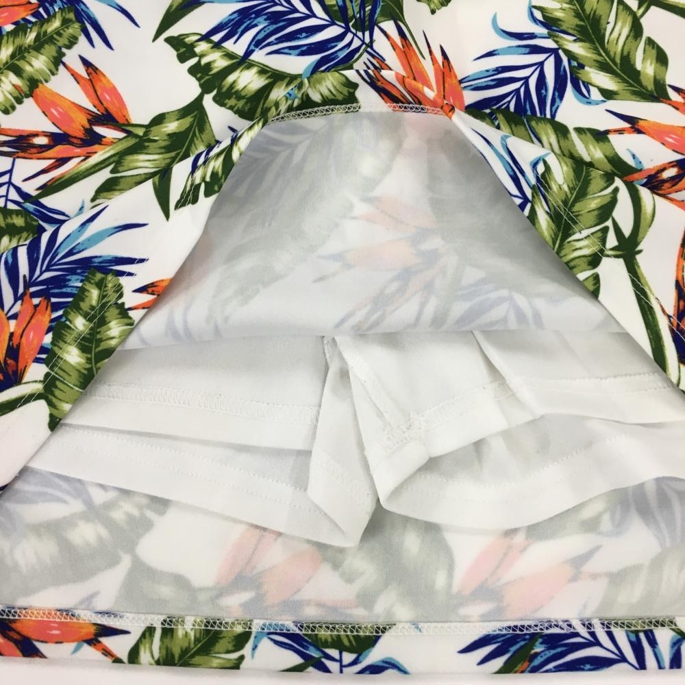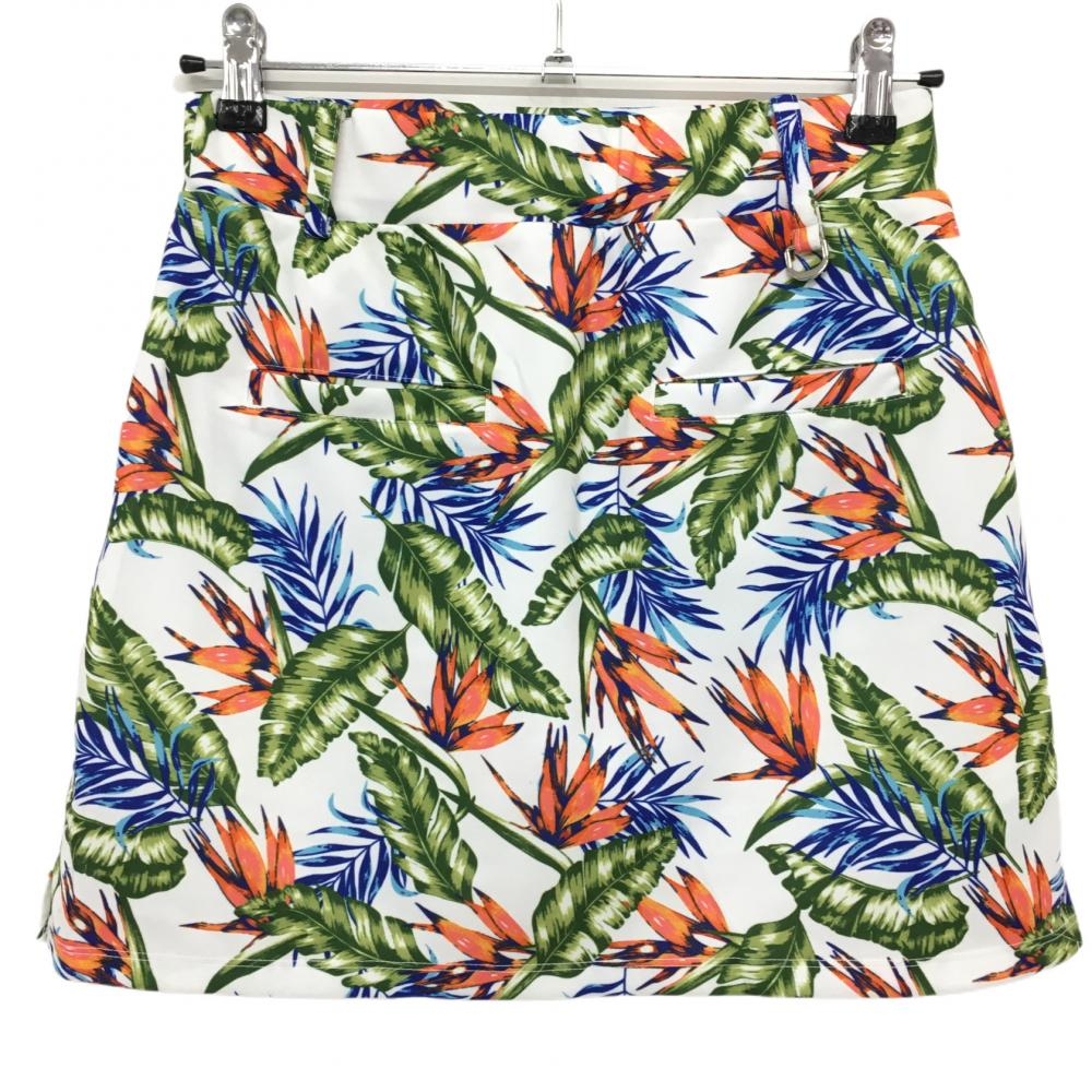 【美品】デルソル スカート 白×グリーン リーフ柄 内側インナーパンツ レディース M ゴルフウェア DELSOL