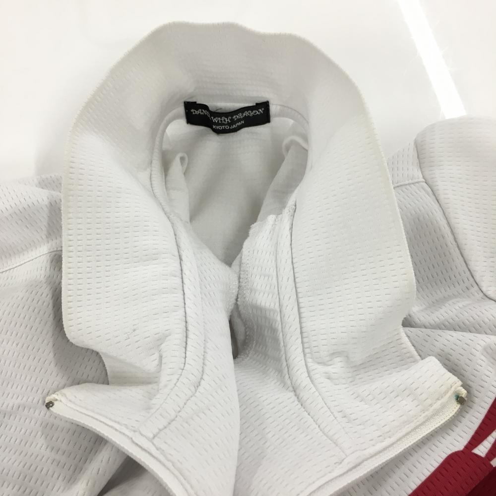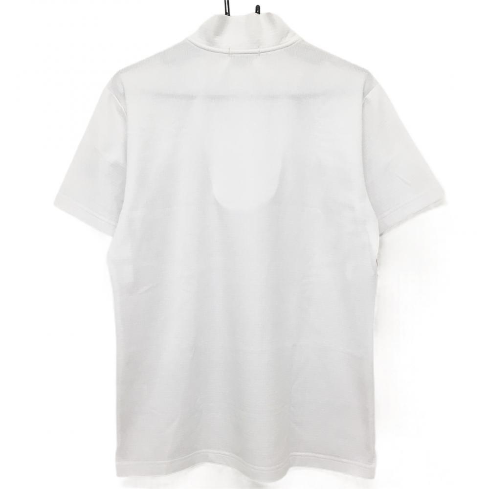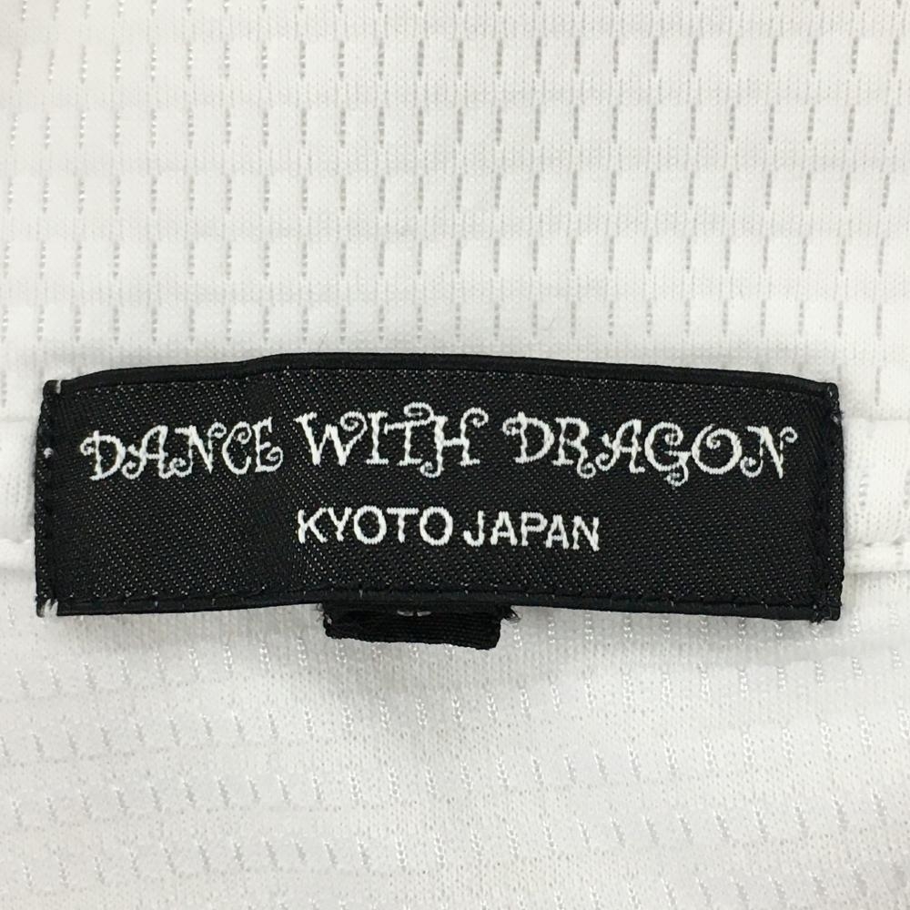【超美品】ダンスウィズドラゴン 半袖ハイネックシャツ 白×レッド 前英字総柄 織生地 メンズ 3(L) ゴルフウェア Dance With Dragon