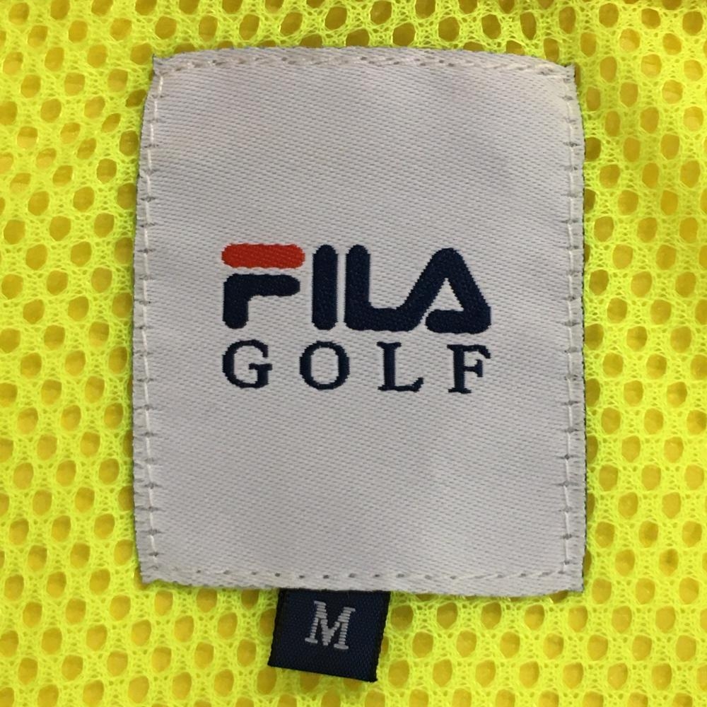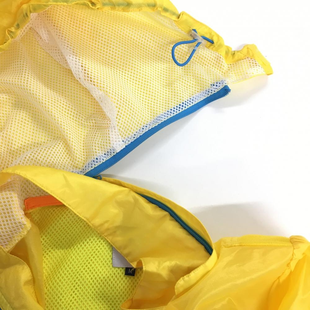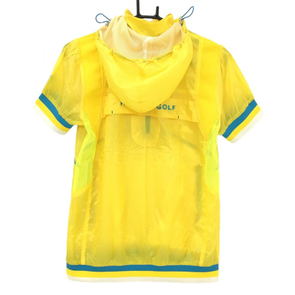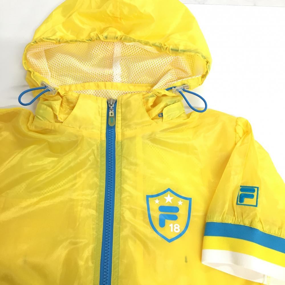 【超美品】フィラゴルフ 半袖パーカー ハーフジップ ポリエステル イエロー×ブルー フード着脱可 レディース M ゴルフウェア FILA GOLF