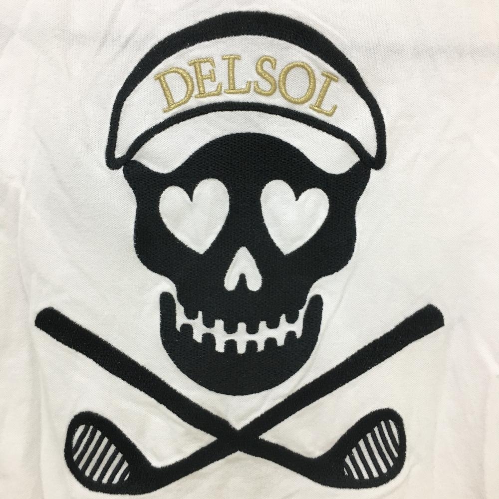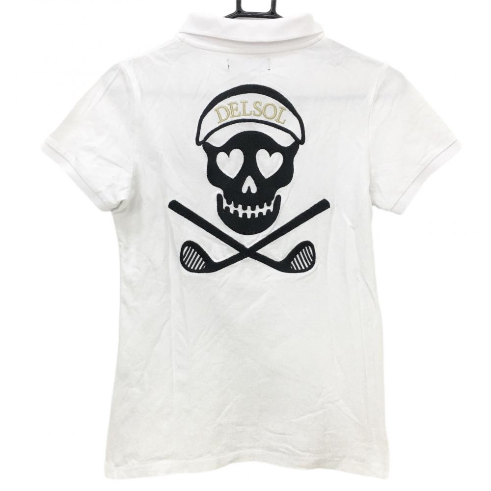 デルソル 半袖ポロシャツ 白×黒 背面ビッグスカル レディース M ゴルフウェア DELSOL