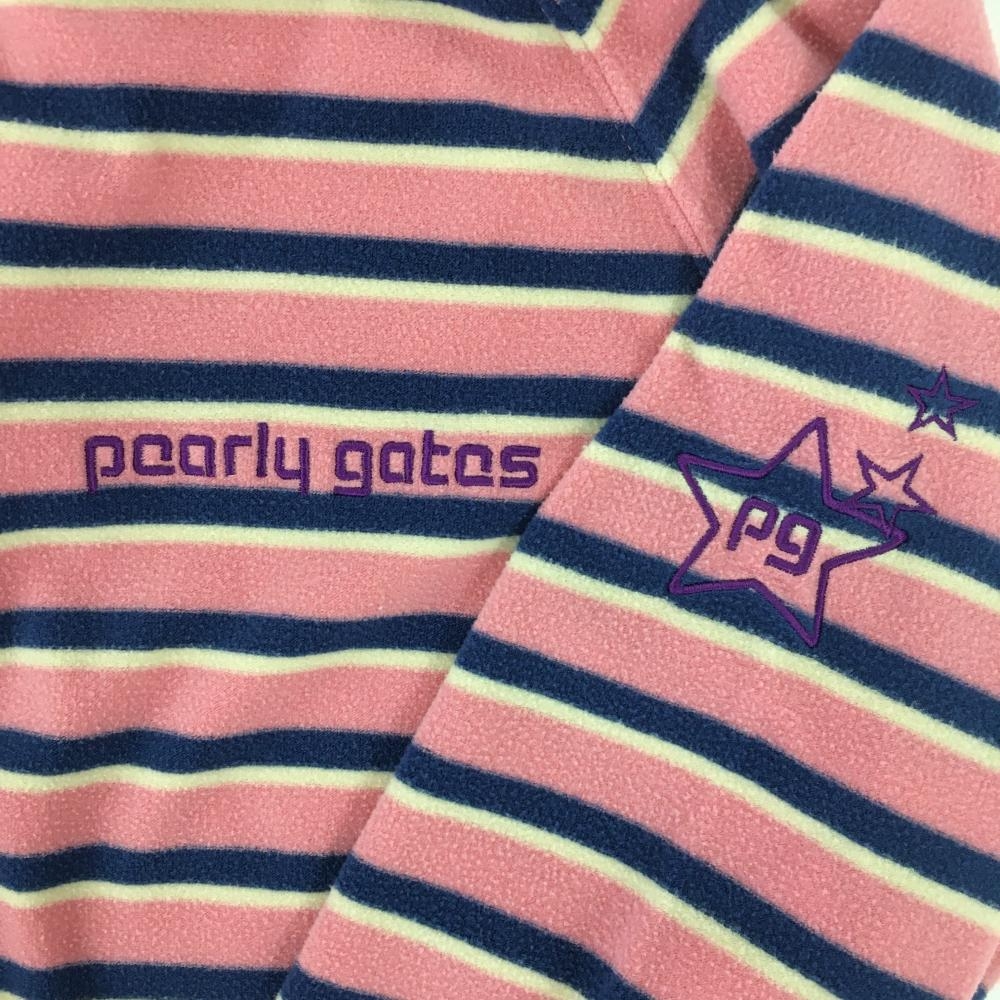 【美品】パーリーゲイツ パーカー ピンク×ブルー ボーダー フリース ハーフジップ レディース 1(M) ゴルフウェア PEARLY GATES