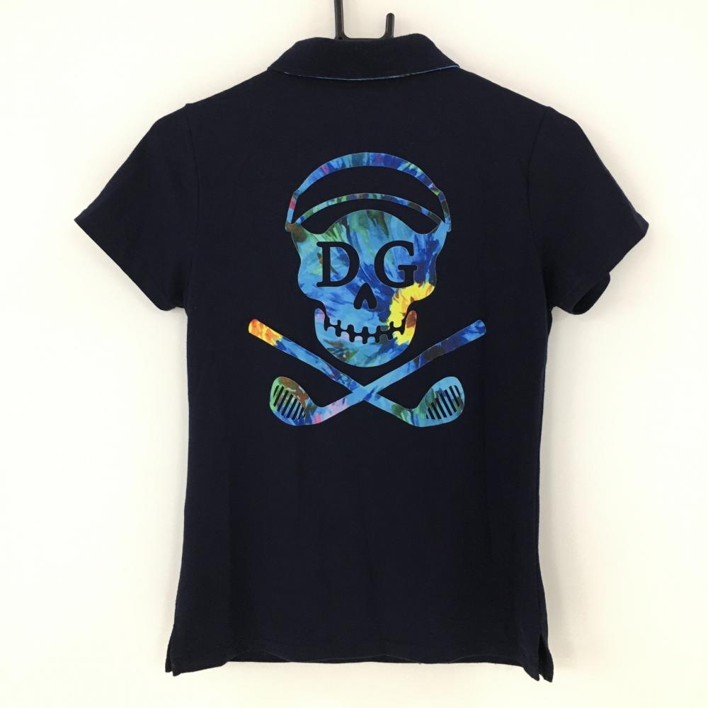 デルソル 半袖ポロシャツ ネイビー×ブルー 背面ビッグスカル レディース L ゴルフウェア DELSOL