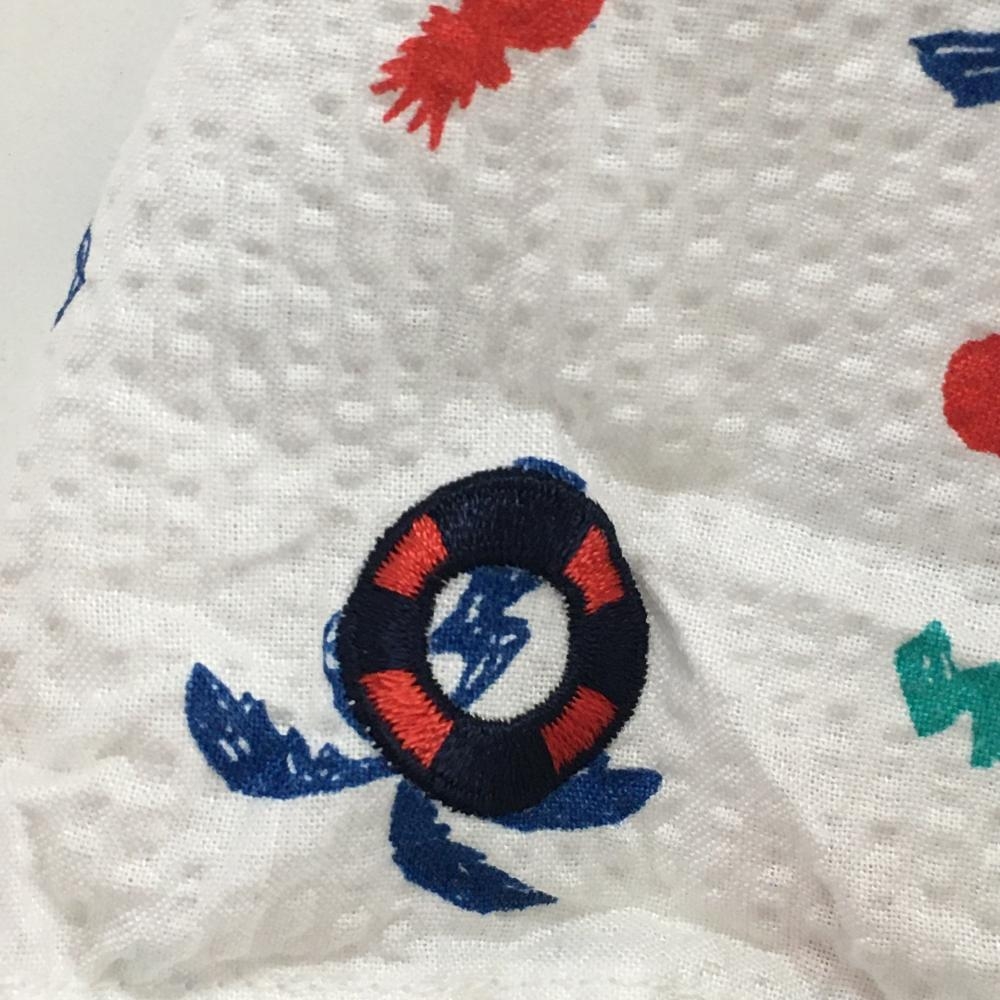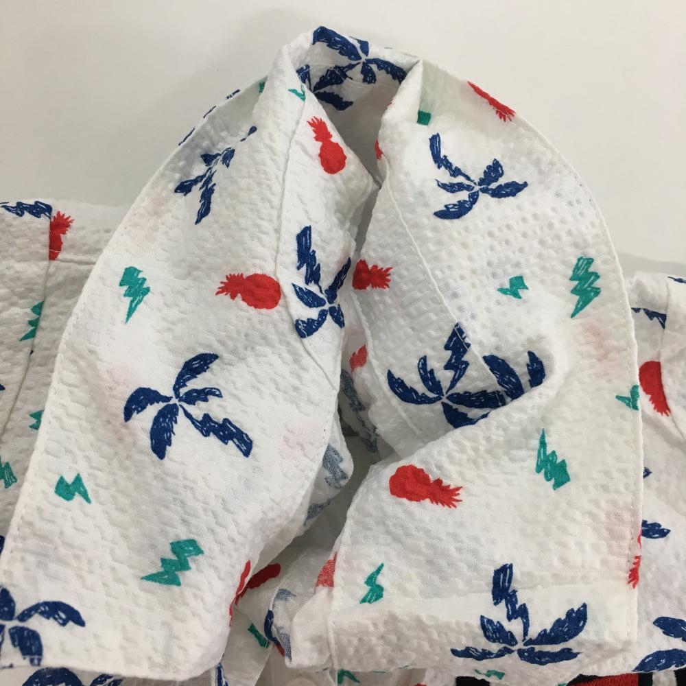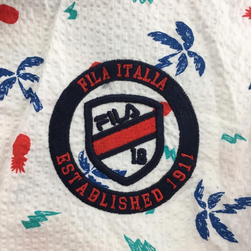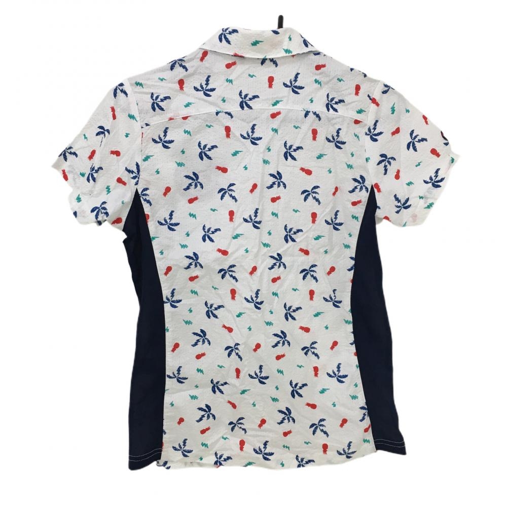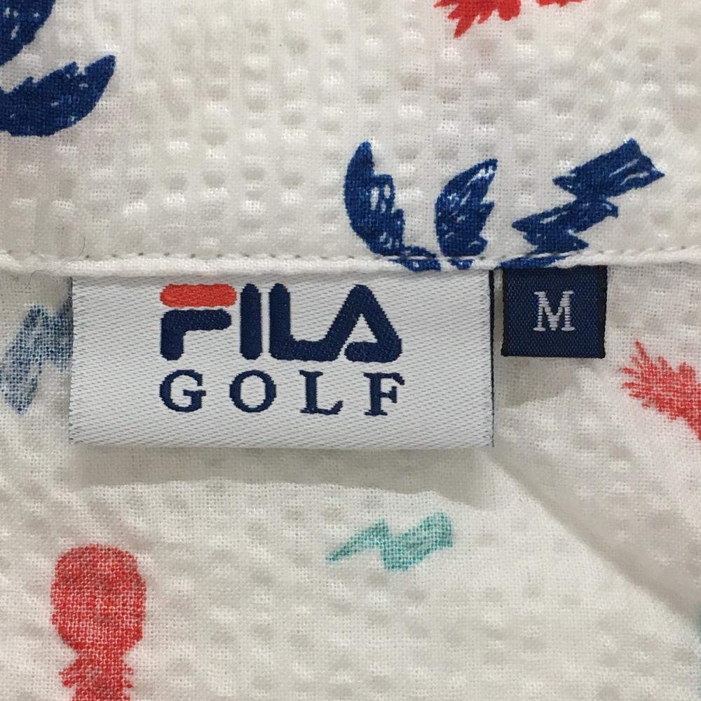 【美品】フィラゴルフ 半袖ポロシャツ 白×ネイビー ヤシの木 パイナップル サッカー生地 レディース M ゴルフウェア FILA GOLF