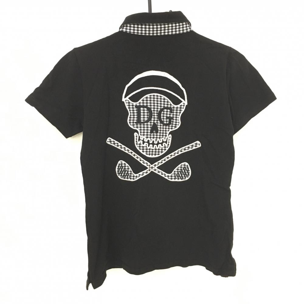 デルソル 半袖ポロシャツ 黒×白 背面ビッグスカル チェック レディース L ゴルフウェア DELSOL