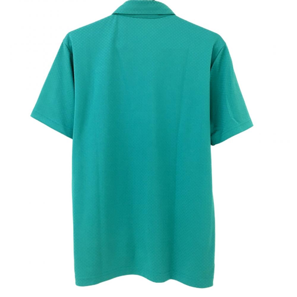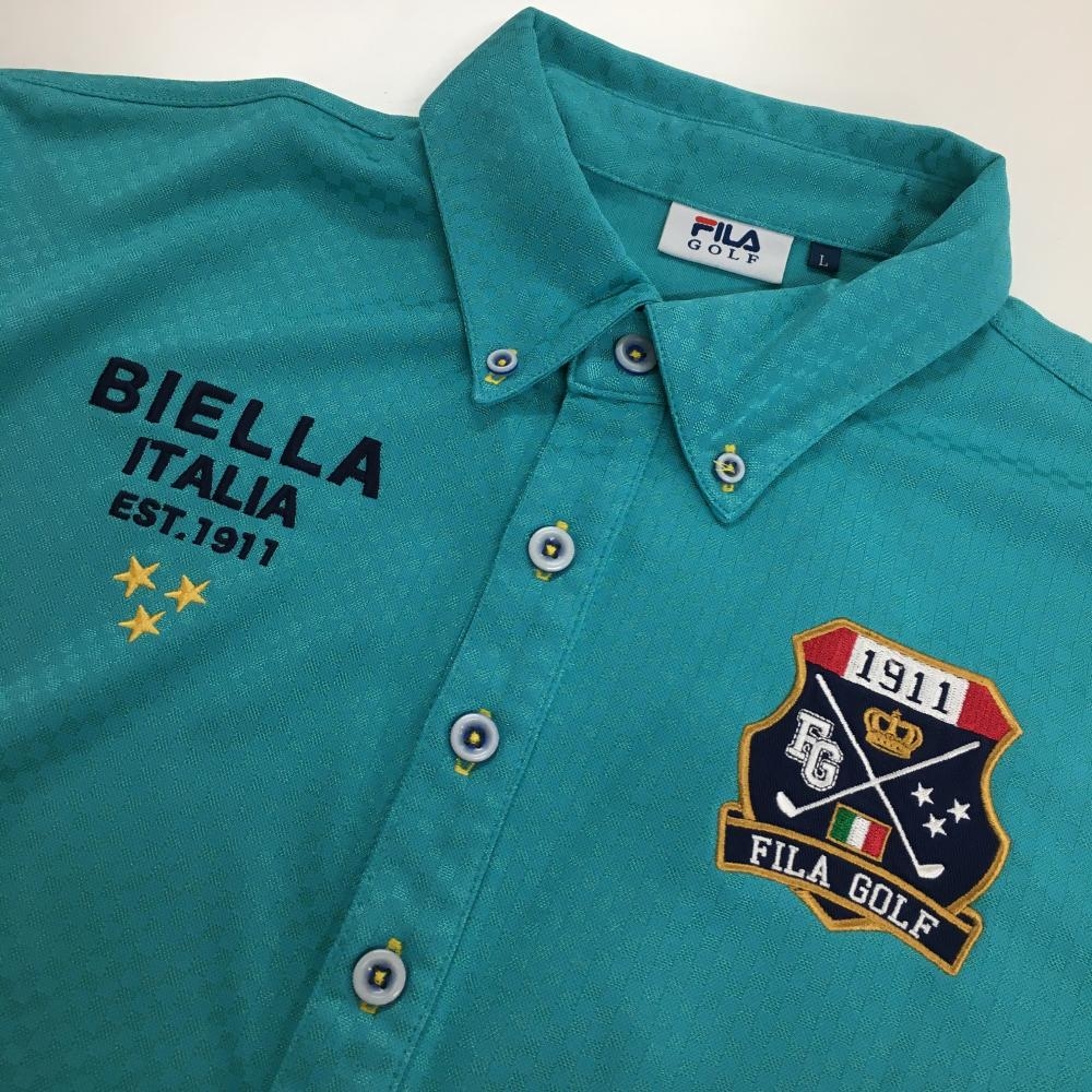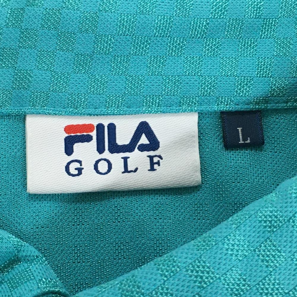 【超美品】フィラゴルフ 半袖ポロシャツ ライトブルー×ネイビー ブロック柄織生地 胸元刺 メンズ L ゴルフウェア FILA GOLF