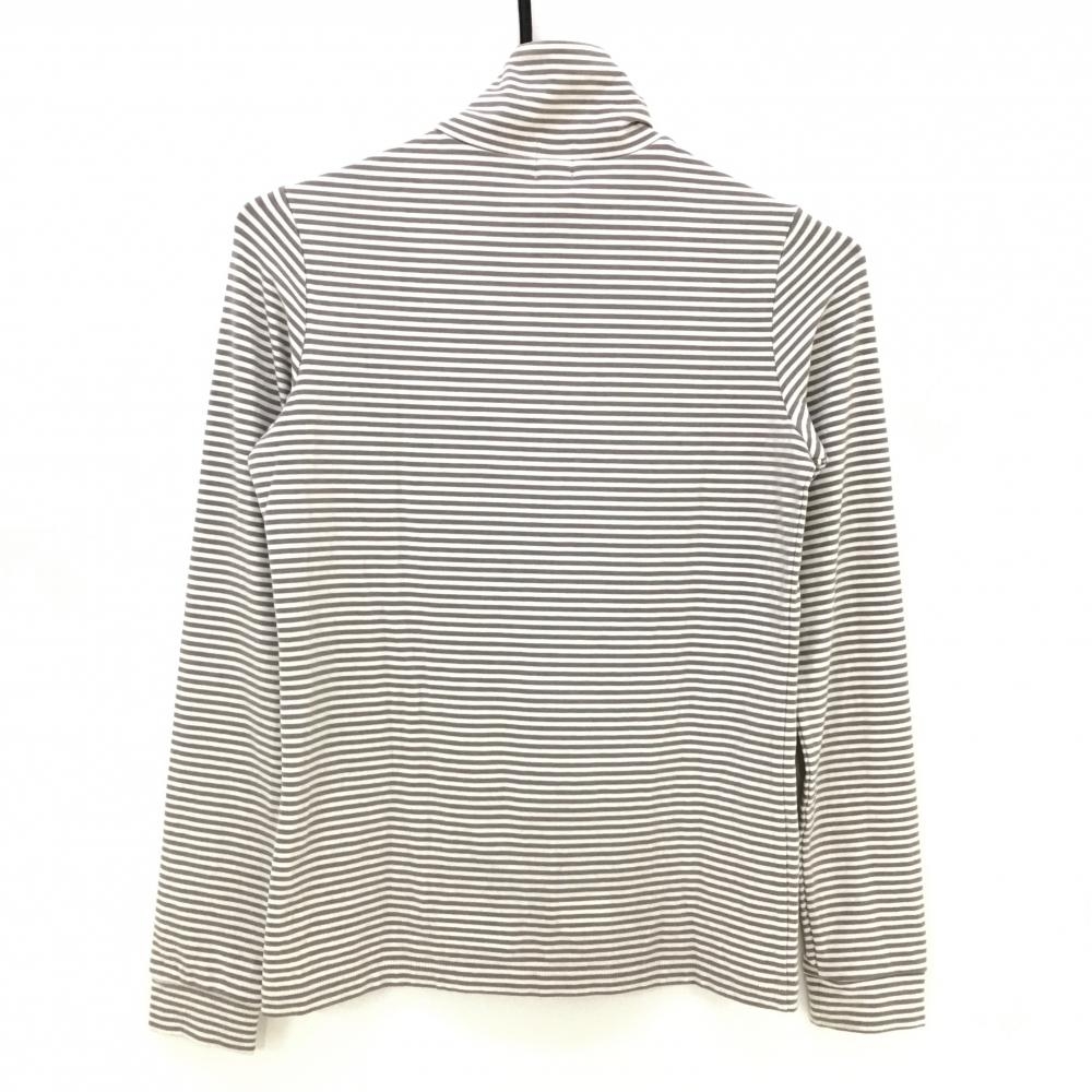 【美品】アルチビオ 長袖ハイネックシャツ ベージュ×白 ボーダー 微起毛 レディース 36 ゴルフウェア archivio