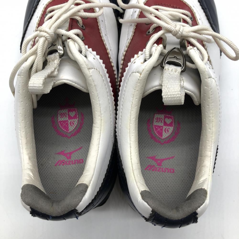 【美品】ミズノ ゴルフシューズ 白×ネイビー×レッド 45KW-02114 押切もえコレクション レディース 23.0 ゴルフウェア MIZUNO