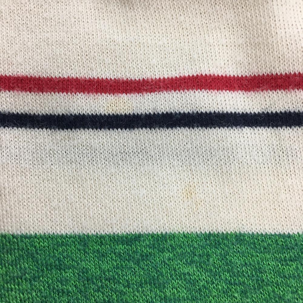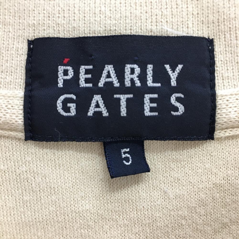 【美品】パーリーゲイツ 半袖ポロシャツ ベージュ×グリーン ランダムボーダー コットン混 日本製 メンズ 5(L) ゴルフウェア PEARLY GATES