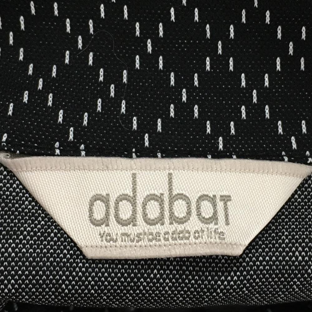 【超美品】アダバット 半袖ハイネックシャツ 黒×白 総柄 スタンドカラー 胸元ロゴ レディース 38(M) ゴルフウェア adabat