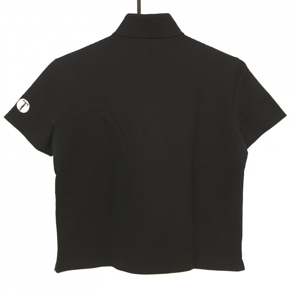 【美品】アダバット スタンドカラーシャツ 黒×ブラウン 胸元ロゴ刺しゅう レディース I(M) ゴルフウェア adabat