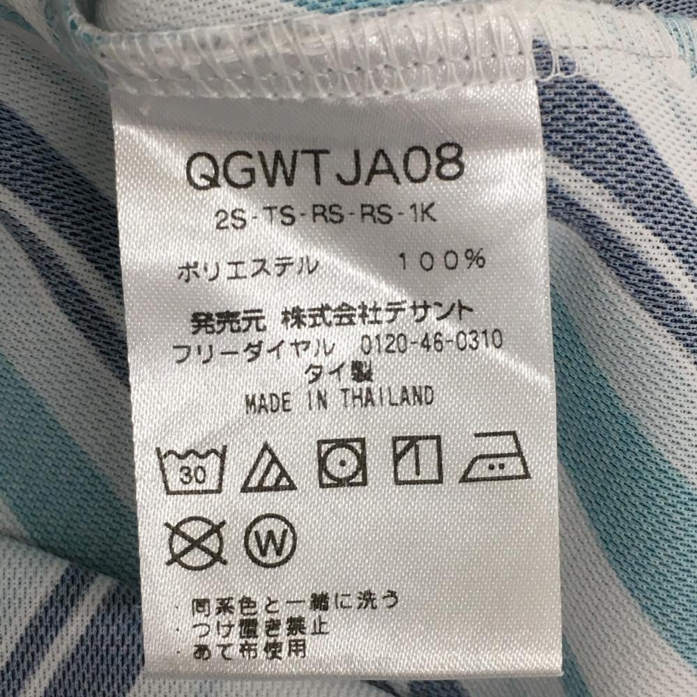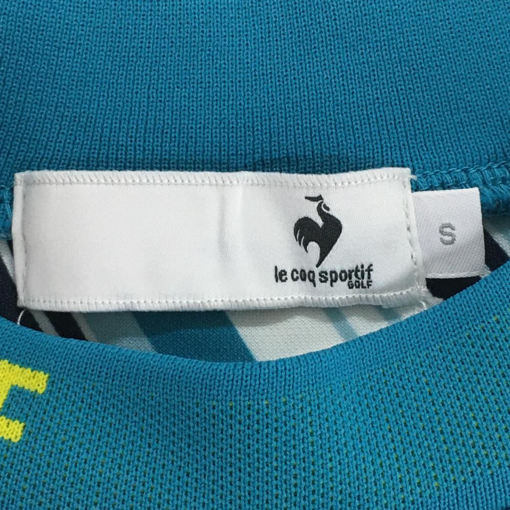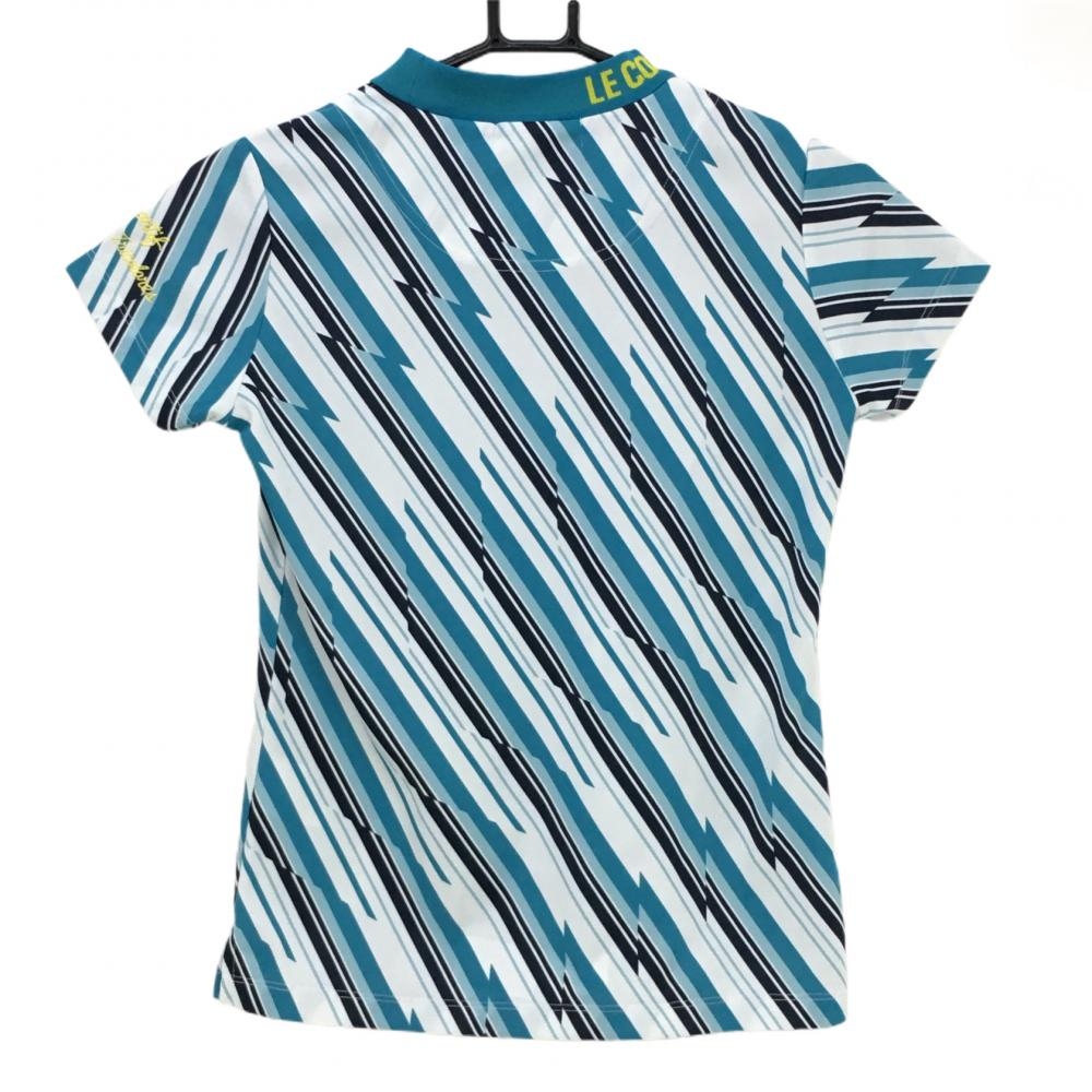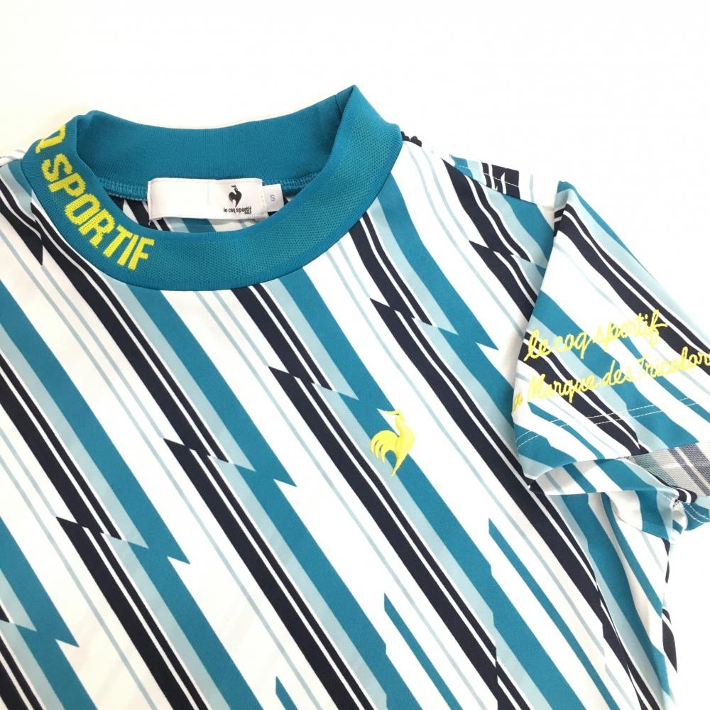 【超美品】ルコック 半袖ハイネックシャツ ライトブルー×白 斜めストライプ レディース S ゴルフウェア 2022年モデル le coq sportif
