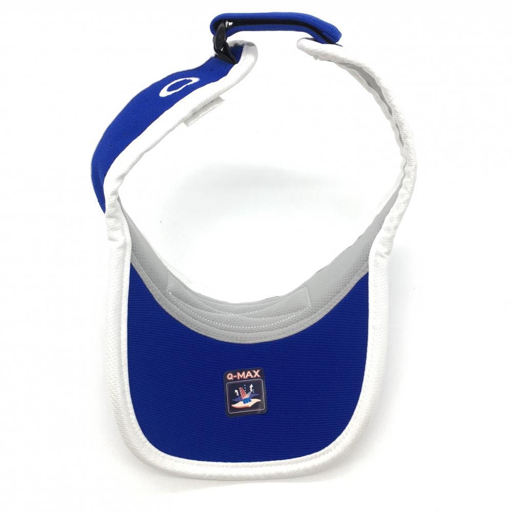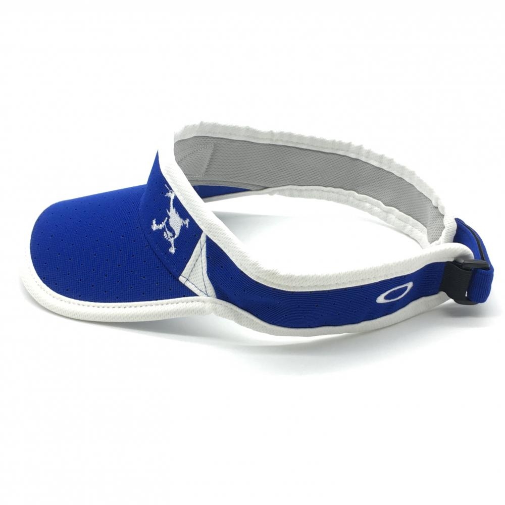 【超美品】オークリー サンバイザー ブルー×白 スカル刺しゅう パンチング ゴルフウェア Oakley