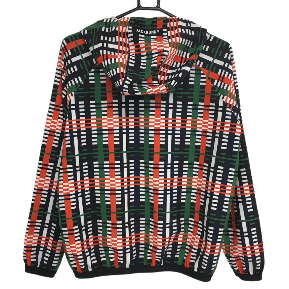 【美品】ジャックバニー ジップパーカー 白×グリーン×レッド チェック ストレッチ ジャケット レディース 1(M) ゴルフウェア Jack Bunny