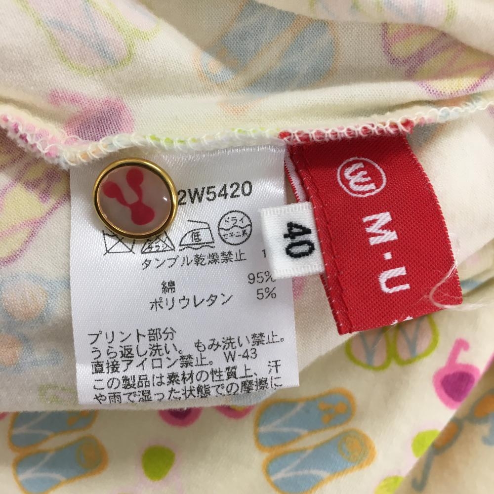 【超美品】MUスポーツ 襟付きノースリーブシャツ ライトイエロー×マルチカラー レディース 40(M) ゴルフウェア M・U SPORTS