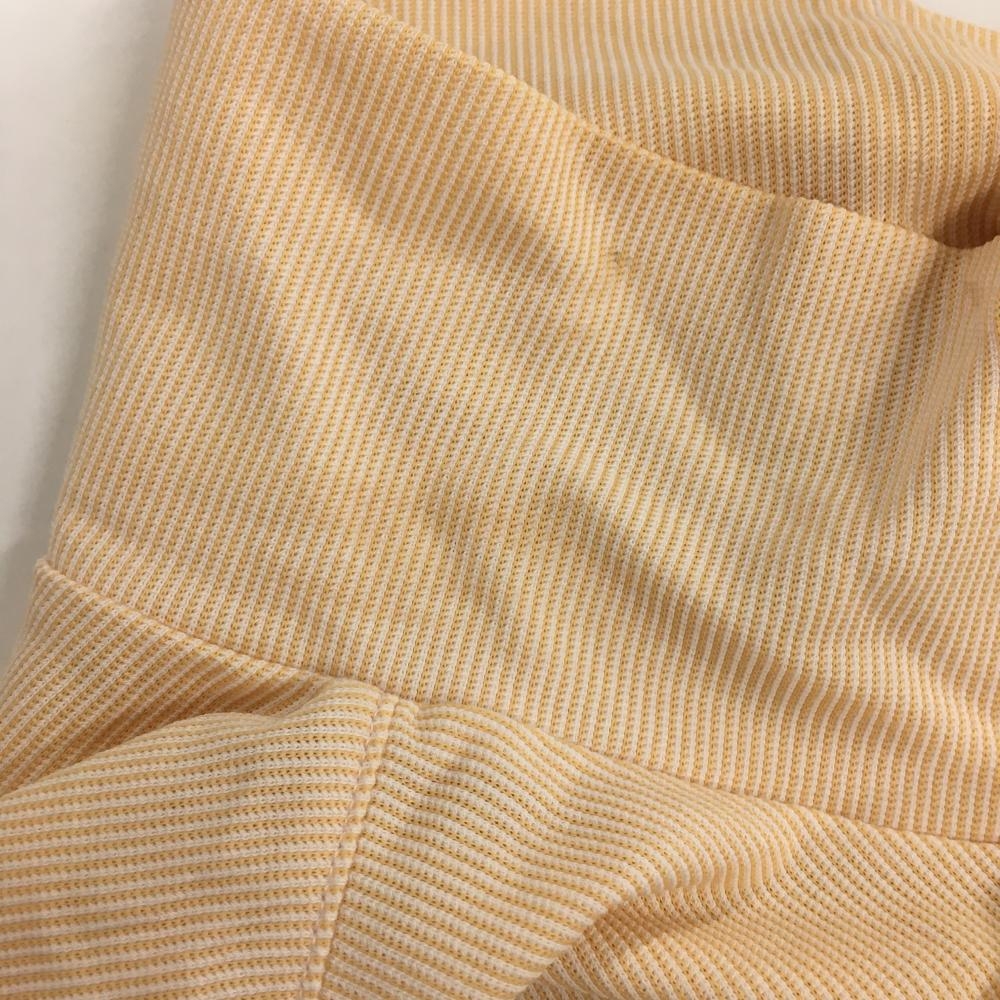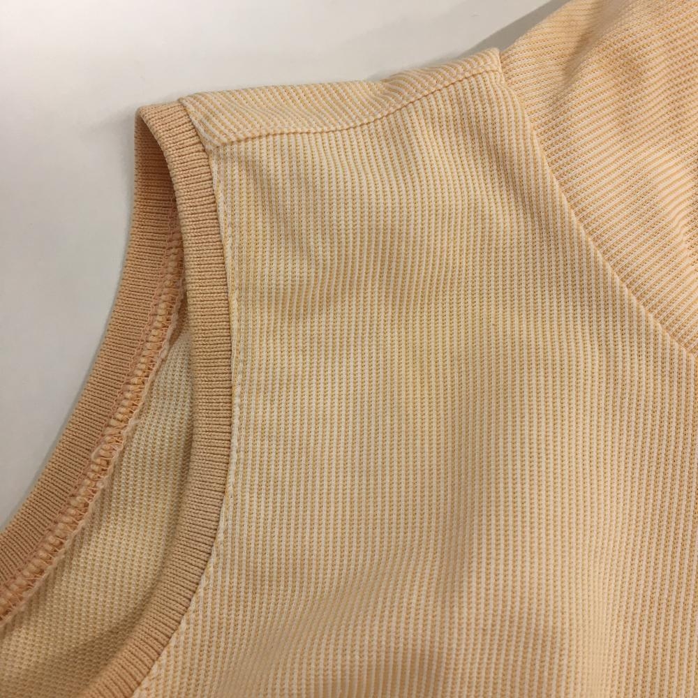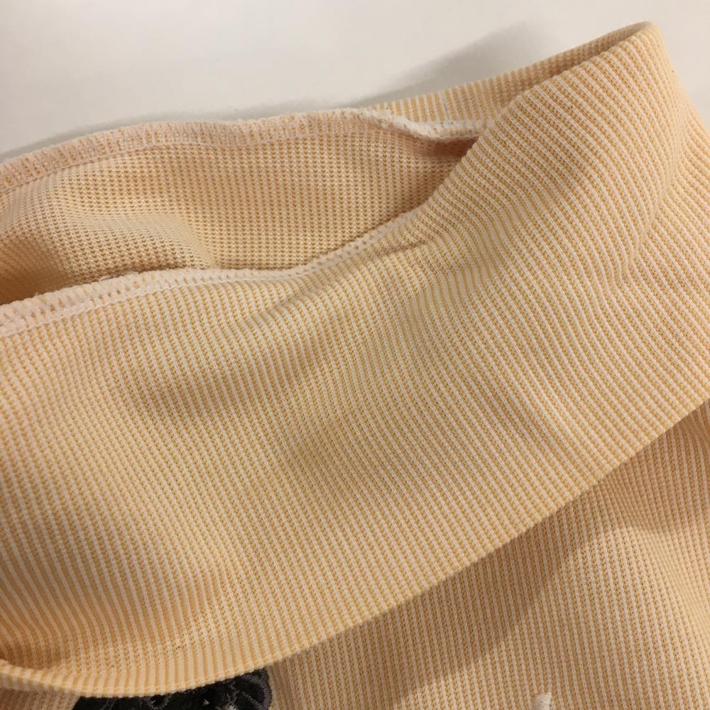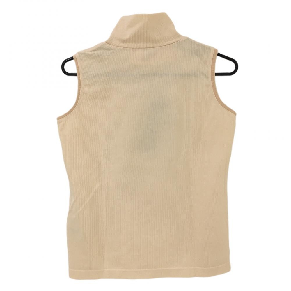 ブラックアンドホワイト ノースリーブハイネックシャツ ベージュ×白 ストライプ柄 犬ワッペン レディース M ゴルフウェア Black&White
